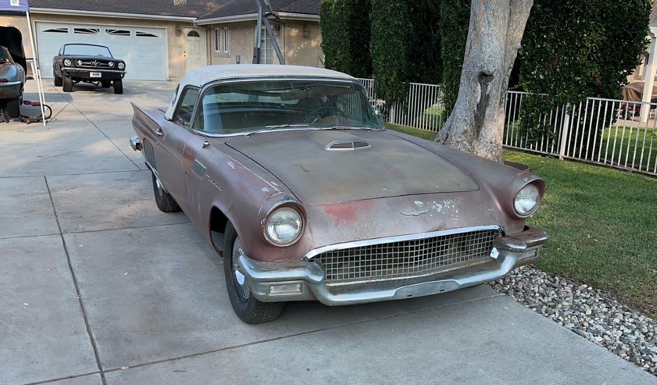 1957 Ford Thunderbird 312 V8 auto VIN D7FH394015 The options are power steering and Town and Country radio. The Thunderbird has been in storage for 30 years - the engine is not seized. The original colour is Bronze.A photo of a 57 Thunderbird in this colour is shown in the photos. Note that this car is rust-free and has no damage to the panels. Absolutely perfect body. Complete car. Larrys Thunderbird and Mustang in CA sell all parts for T Birds - I can assist in importing parts on a later container if required. The car is in transit - should be here late August - landed price SOLD Car ID#647 - Return to Index |