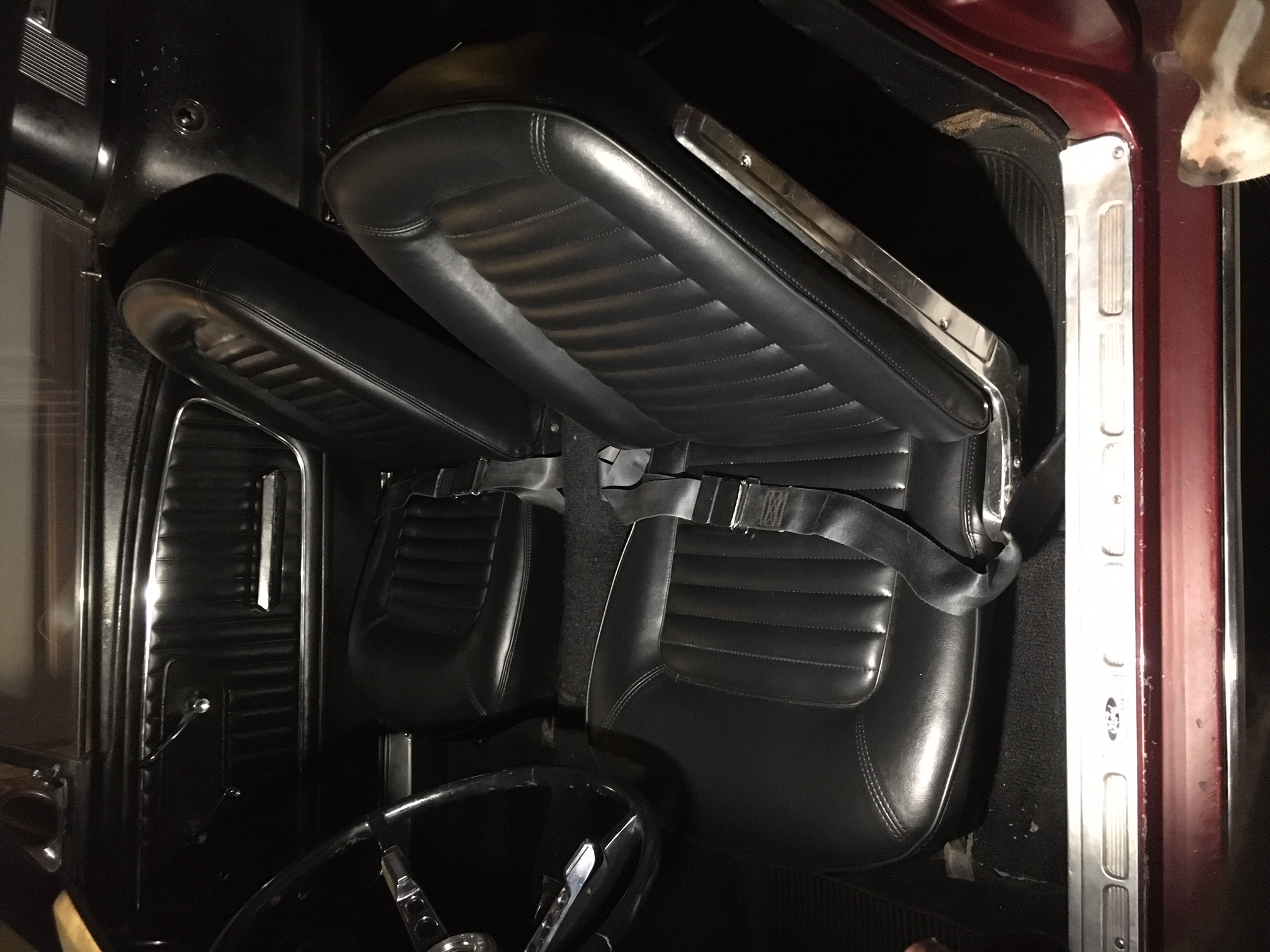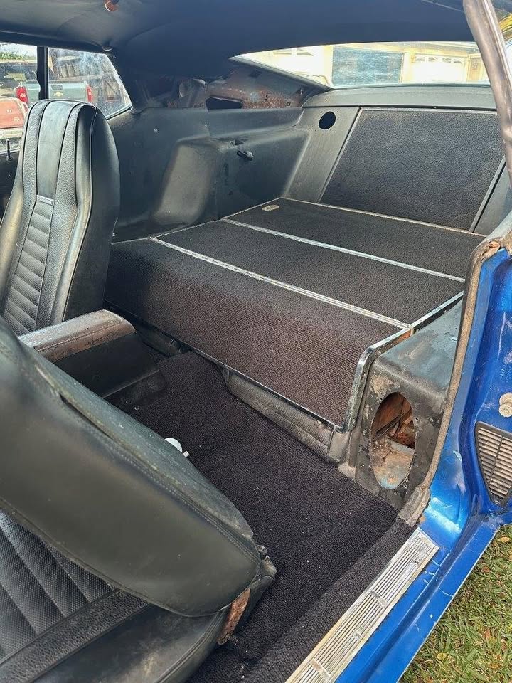 1965 Ford Mustang Fastback V8 Auto VIN 5R09A175903 This Fastback has a very good body with all original panels and floors. Paint is average Options 1) 5.0 Litre fuel injected roller motor 2) Headers 3) air conditioning 4) aluminium radiator 5) four wheel disc brakes 6) 4 speed auto with overdrive (AOD ) 7) frame connectors Before shipping new seat upholstery fitted .Strong running fastback. prices on Fastbacks moving upward -becoming hard to keep under $100K $79,000 Car ID#614 - Return to Index |