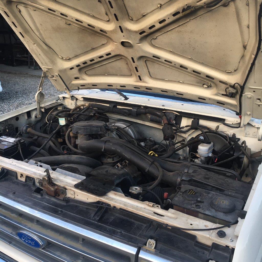 1990 Ford F-150 single cab short bed truck VIN 1FTDF15N9LPB31370 These later short beds are getting hard to find in good original condition. This truck is still wearing it's original paint & has original interior (White on blue). Very good condition overall considering a higher mileage vehicle (180k miles). There is no body damage or repairs, interior is in really good condition except a minor worn spot on driver side seat bottom cover, and the truck runs and drives well. Recent work includes: Transmission removed & front pump bushing & front / rear seals replaced, full trans oil & filter service, rear main engine seal replaced, engine oil pan gasket replaced, and an oil & filter change. The following items will need attention at some point: 1) needs new front tires, rears were replaced more recently. 2) power windows may need motors or switches 3) brake & turn signals not working (may be a fuse) $34,900 Car ID#623 - Return to Index |