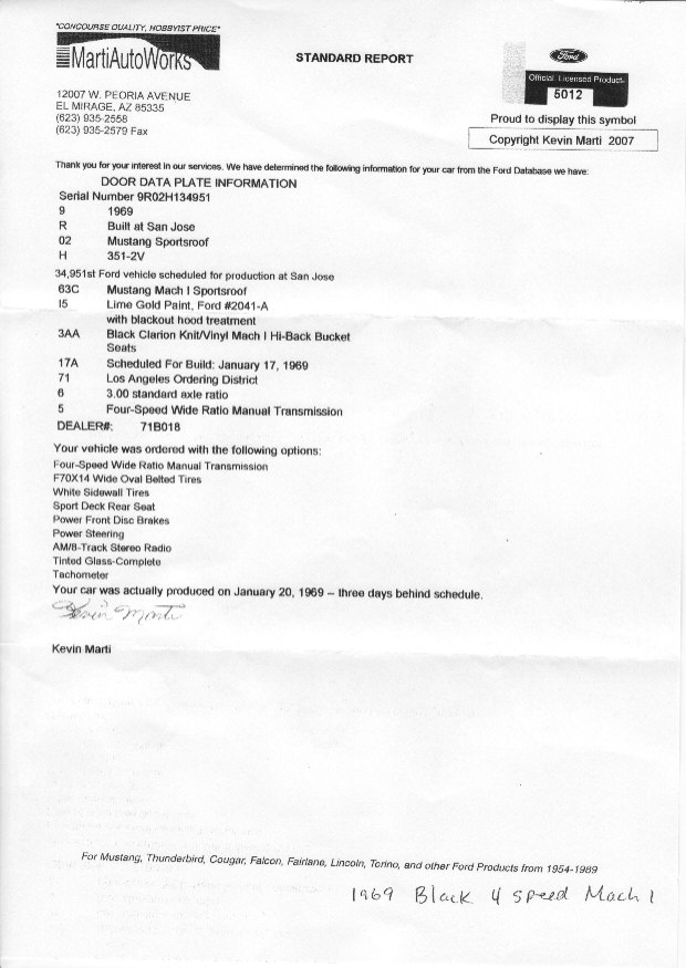 1969 Ford Mustang Fastback Mach 1 351 V8 4V 4 Speed Manual