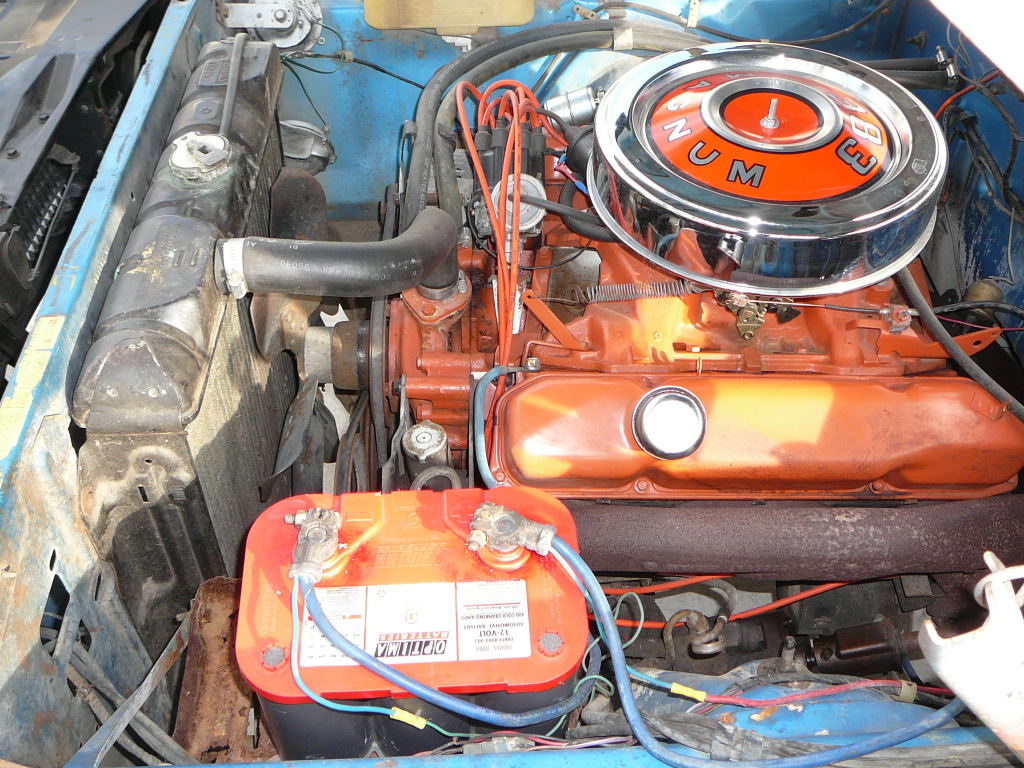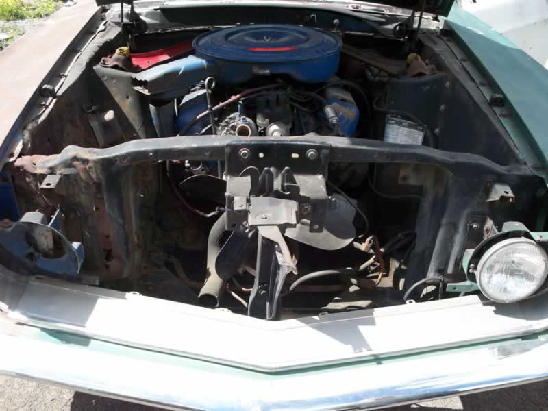Mustang has power front disc brakes solid rear quarters, no rust in rear rails and no rust in front floors or torque boxes. V8 351 in car now, always a V8 car some rust in rear floors.