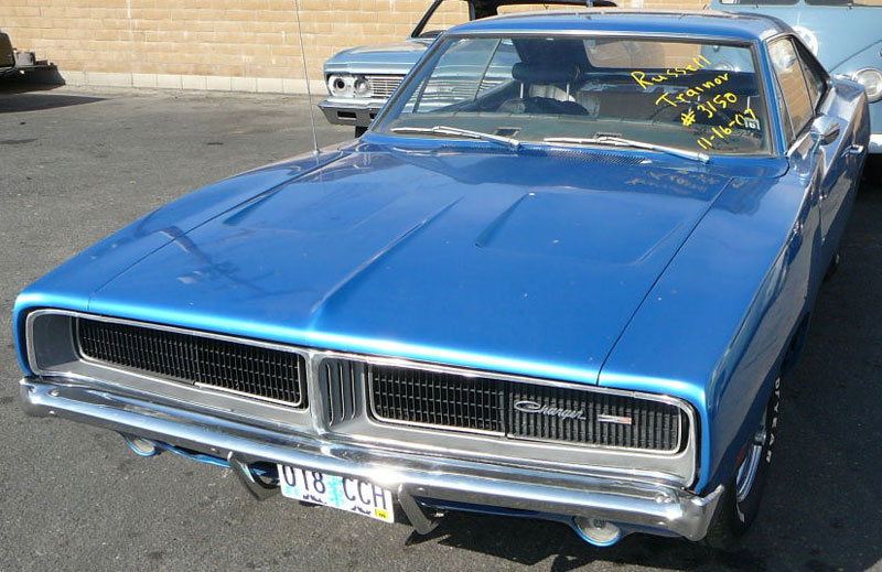 Nice original Big Block 383 V8 Charger (all numbers matching), has original 4 speed manual which is documented on fender buck tag. Charger also has power steering and Magnum 500 wheels. Exterior paint is B 5 blue with tired blue interior. (note price includes new interior by  Legendary -  includes seat covers, seat foam, headliner, carpets, door panels and chrome pads, new sill panels, etc. Charger has never been painted in door jambs or inside boot. Very solid Charger with only one small rust hole in boot (minor patch). Good strong motor. Overall a very good and rare big block car with the bonus of 4 speed manual.