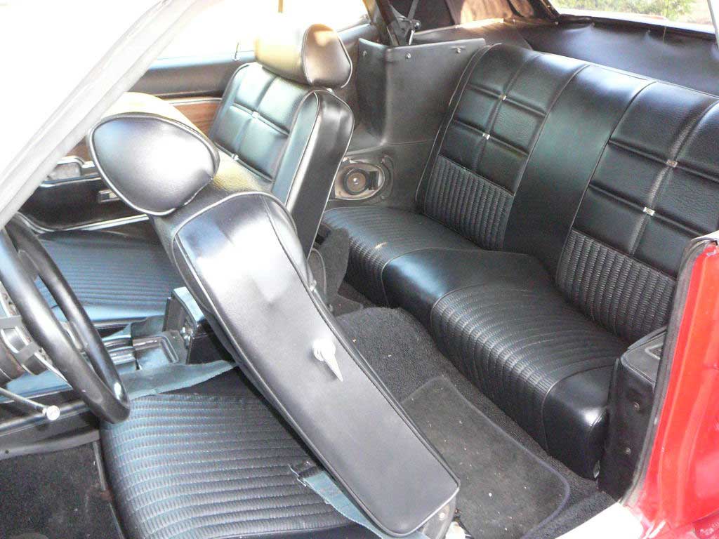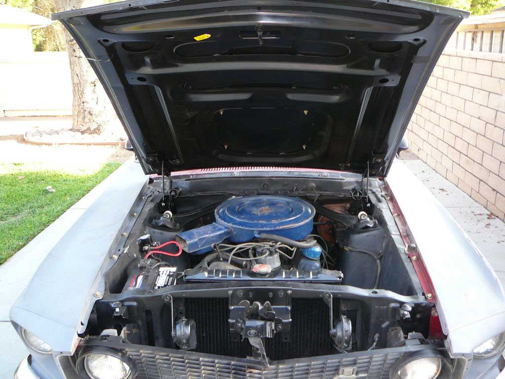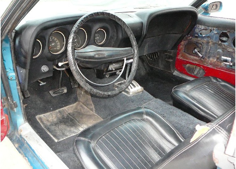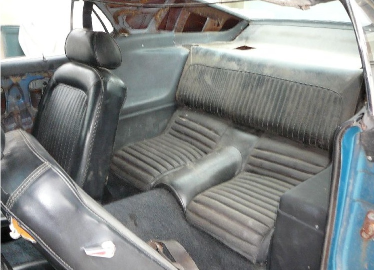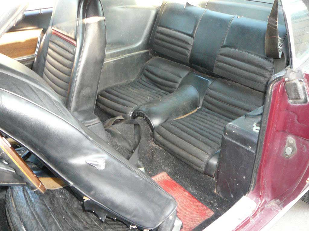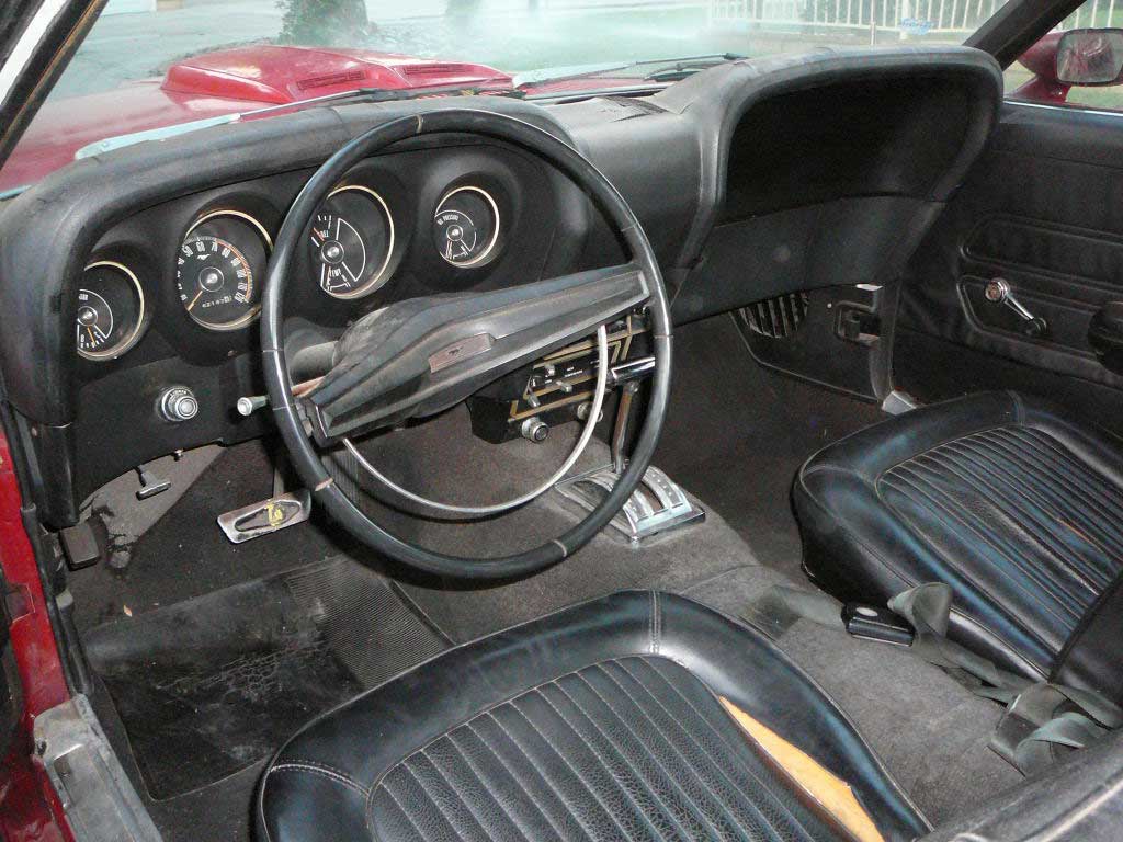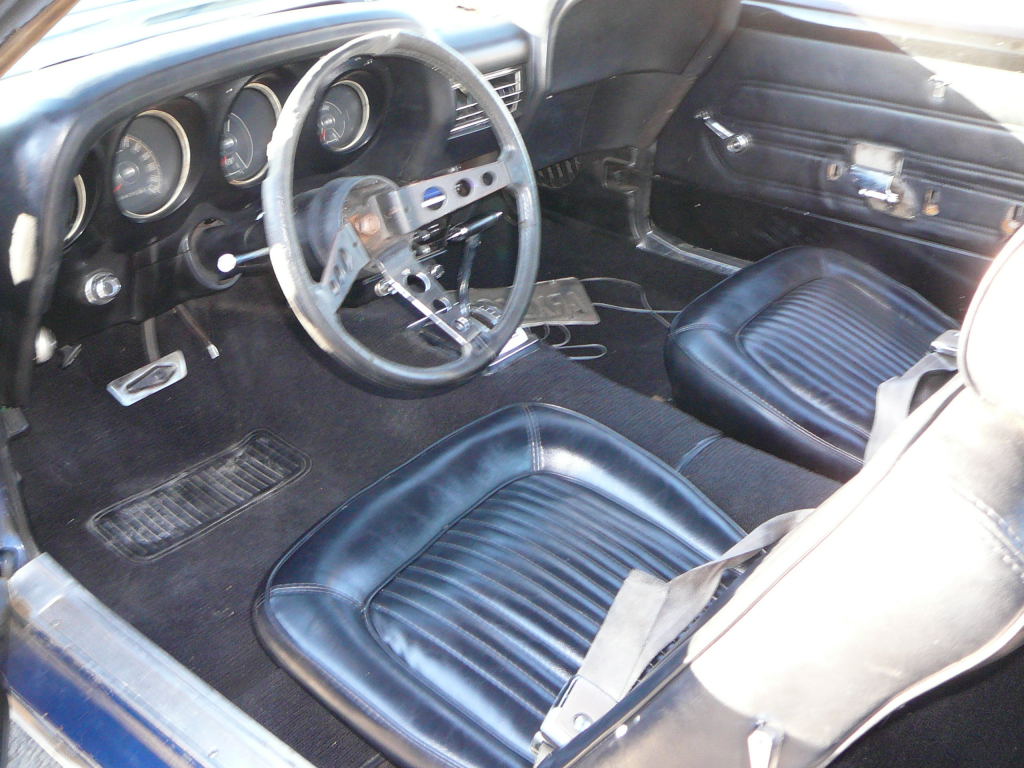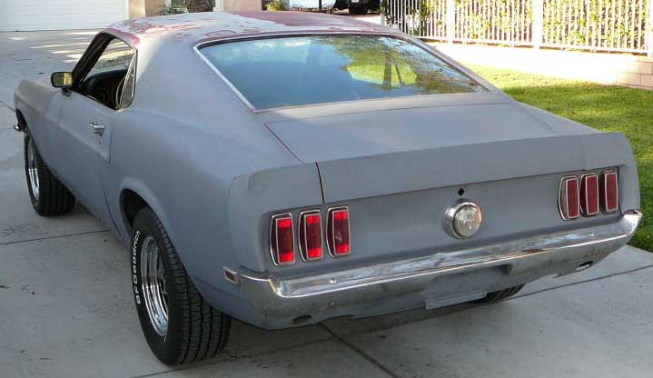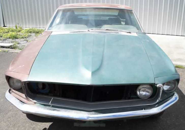 Original 6 cyl with C4 auto. Not loaded up with a lot of options but does have a perfect   fold down rear seat with no cuts to trap door for speakers. Has a Mach 1 style hood and the car drives quite well. Black interior is original but needs redo. Body is very good and rust free except Fastback has had a hit to right hand rear causing damage to quarter panel and outer wheel house. A new quarter skin and wheel house is provided for the repair. Note that 69 Mustangs have 5 stud wheels and run same rear end as V8 Mustangs from 65-68, making an upgrade to say a 302 V8 an easy conversion.