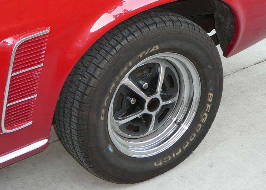 Note: all 1969 Mustangs have 5 bolt wheels and V8 stubs - rear end is also an 8 inch diff, same as 65-68 V8 cars. Pre 69 car if 6 cyl had 4 stud wheels. This fastback is an ideal car for V8 upgrade.