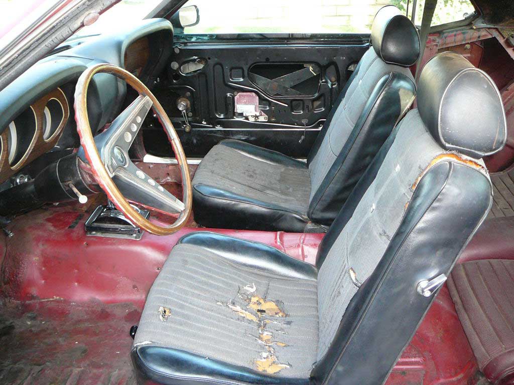 Original M Code Mach 1 with original motor and exterior colour (Maroon) and original interior. There are no speaker holes on inside panels or trap door. This is a solid accident free Mach 1 with sheet metal rust which needs replacement. Note there is no sill, rail or torque box rust in this car - the work that needs to be done is straightforward replacement sections, there is rust in floor sections, tail - light panel (common) and minor rust in bottoms of quarters. Driver door is average so another door is provided as a replacement in price. Now the good stuff. The Mach 1 runs and drives well and has good options.
