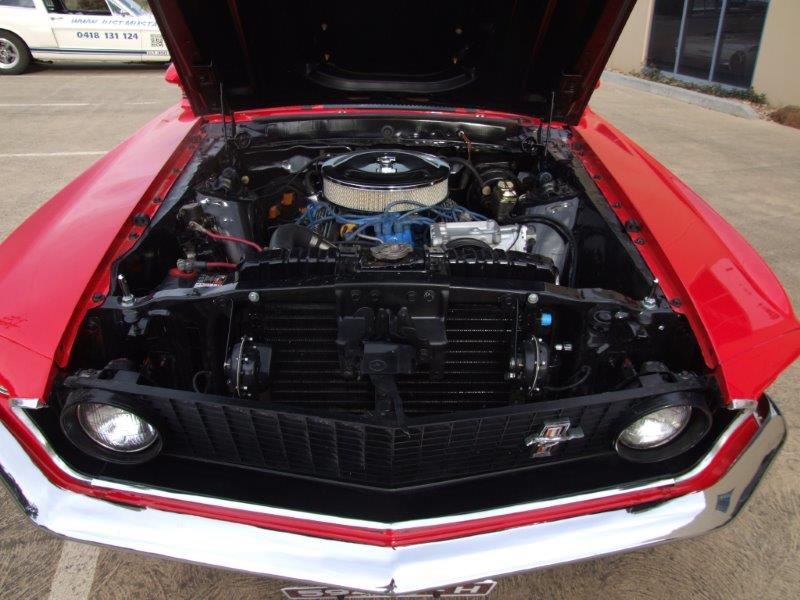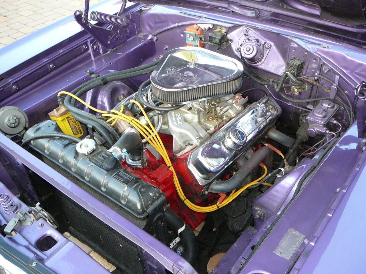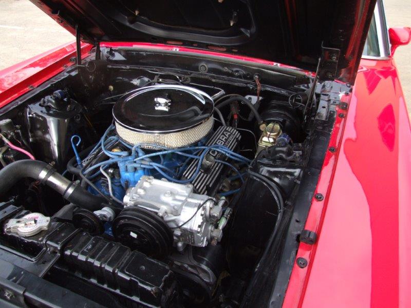 Correct 390 V8 was rebuilt  a while back -very correct under the bonnet with all A/C gear in place .-has correct Ford chrome valve covers ,original S Code intake and exhaust manifolds . Note only the carby and air cleaner are aftermarket.