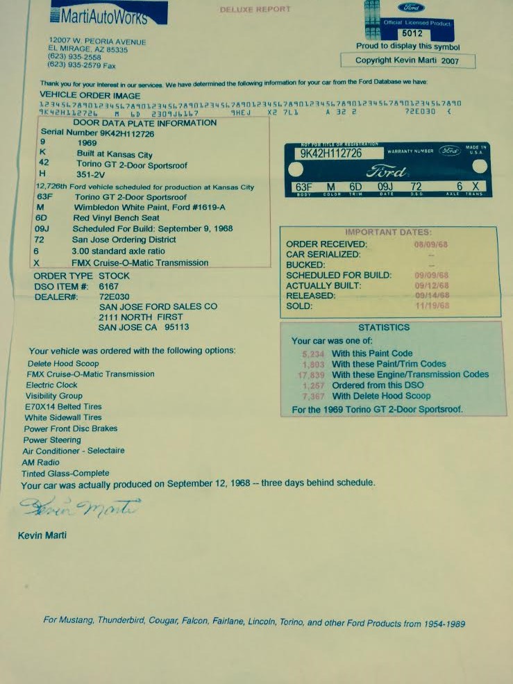 note this Torino was built in 1968 so does not need a Vaas Certificate for rego on club plates