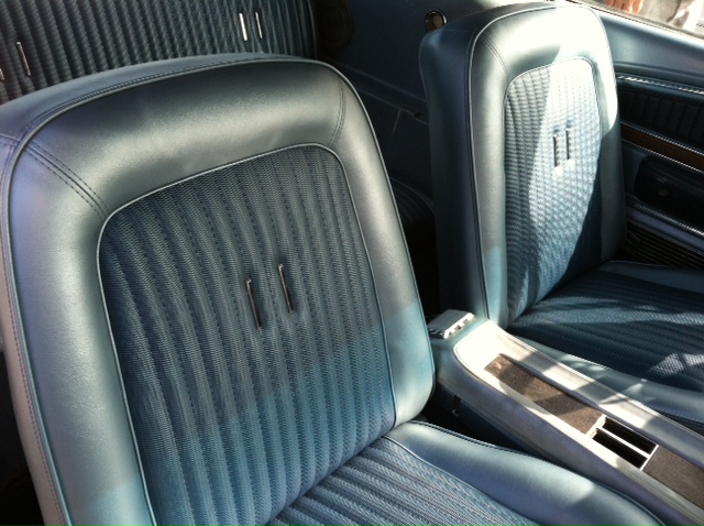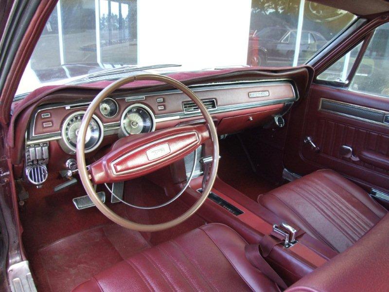 Interior is in fine condition and Cougar drives well . Very clean underneath. note Cougars have same floor pans , steel dash and firewall as 67- 68 Mustangs . Top of boot bit faded but all chrome , grille, and rear sequential tail-lights in good condition. Great car to use now at a reasonable price - check out the quality interior , Cougars always decked out with better finish than their Mustang cousins. SOLD Car ID#394 - Return to Index |