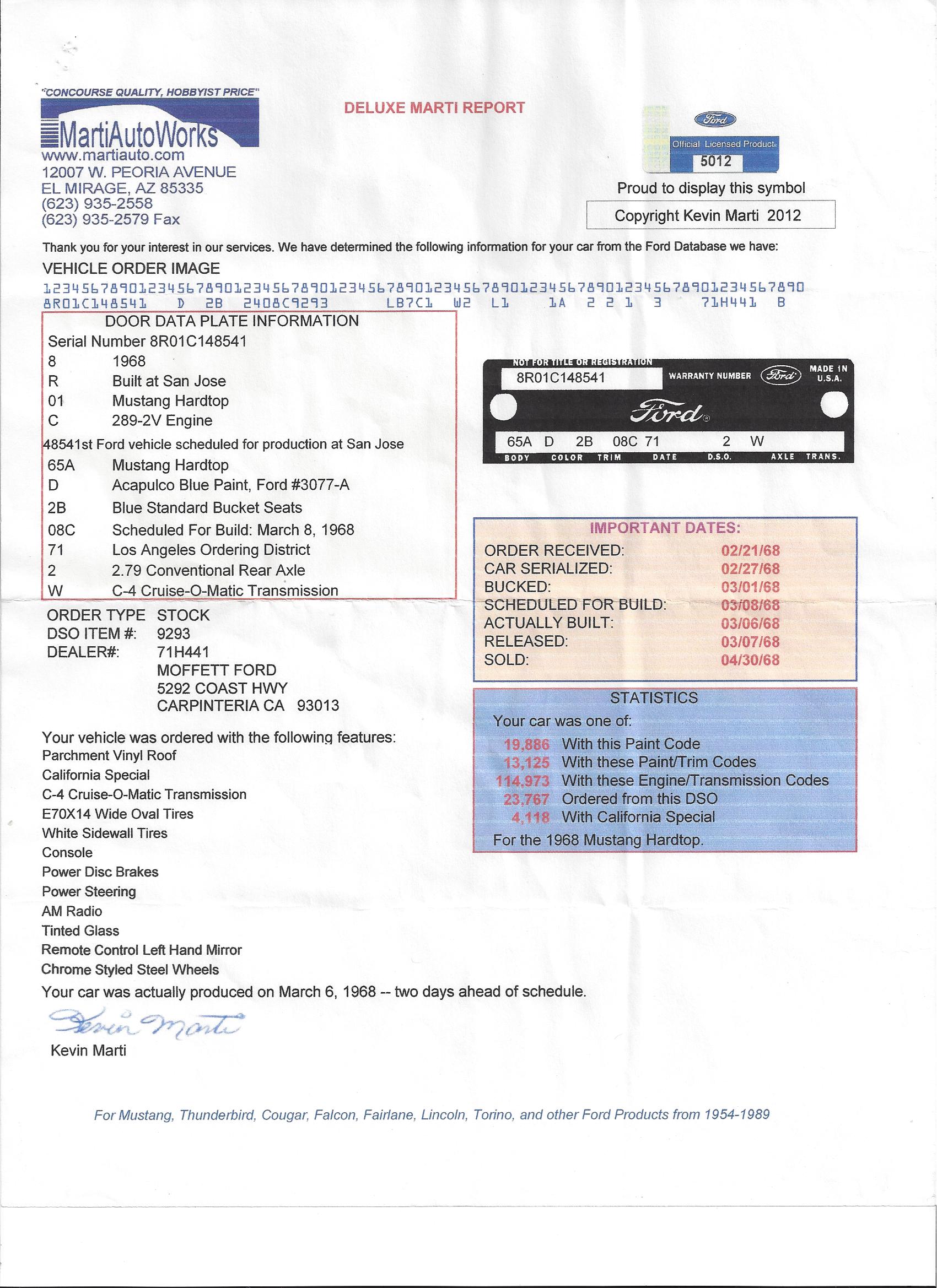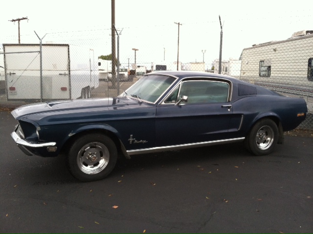 1968 Ford Mustang Coupe Californian Special 289 V8 Auto VIN 8RO1C148541 Californian Specials were only manufactured in 1968 .This is one of only 4118 produced in that year. The Californian Specials were based on the Shelby design -they came with special glass deck lid and quarter extensions ,sequential turn indicators ,Shelby side scoops ,Lucas fog lights ,factory hood locks and special decals . This coupe is an original C Code 289 V8 with auto trans . SOLD Car ID#450 - Return to Index |
