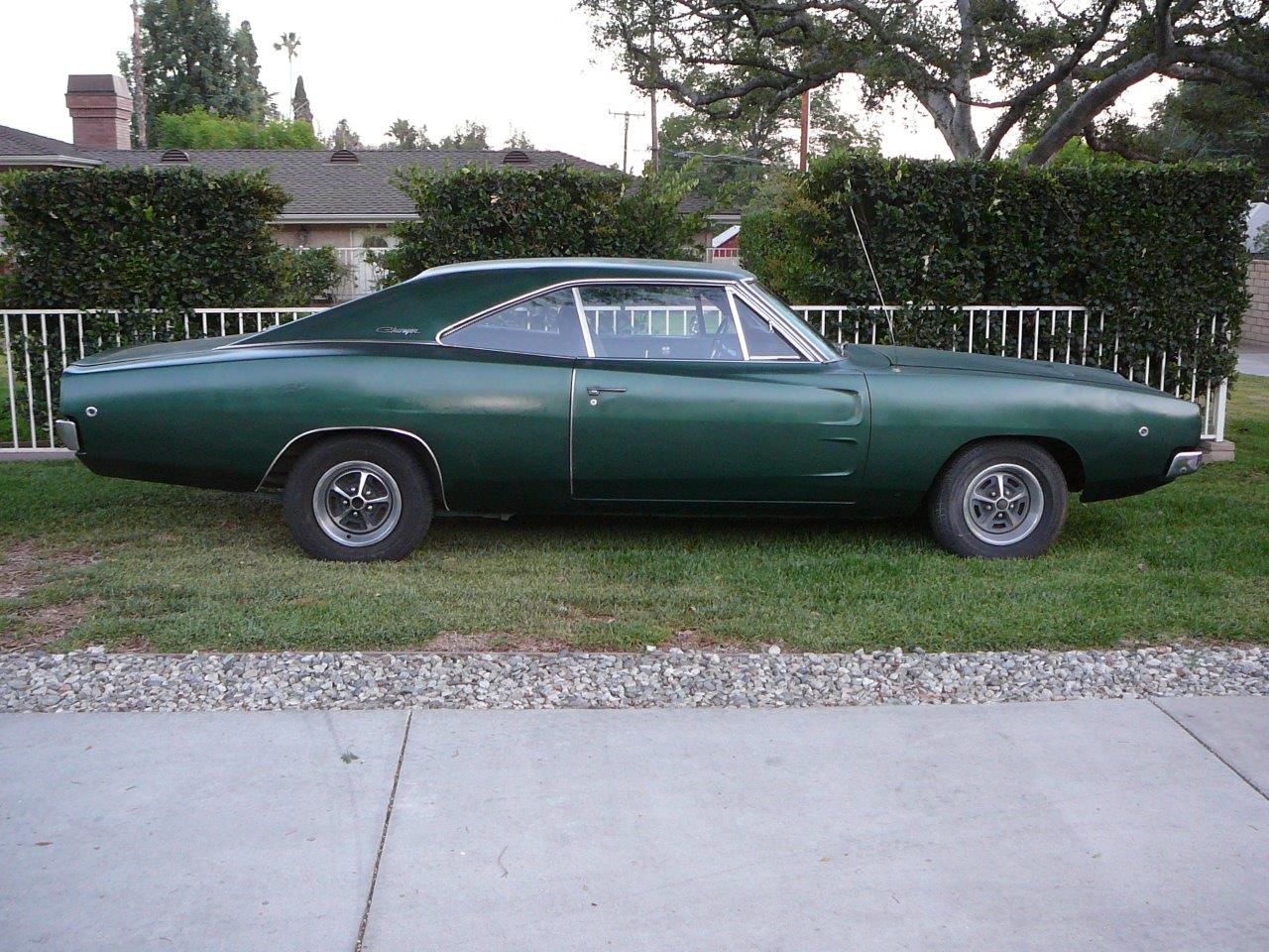 1968 Dodge Charger 318 V8 Auto VIN XP29F8B175520 This Charger has the original engine ,727 Torqueflight trans ,83/4 rear end, power steering ,factory air conditioning ,bucket seats with centre buddy seat and Magnum 500 wheels ..Car is advertised as a non driver as it has been stored for some time .Has new ignition parts and engine will start -will stay running with a carby rebuild and fuel system check .Body is very solid -has had LH rear quarter replaced some time ago .Floors are super clean ,trunk floor has normal Mopar rust .There is minor rust in rear panel behind rear window . Solid roof has new vinyl top -just fitted before shipping .Interior is in good condition -carpet is new ,front and rear seats still in original colour .Dash area is good .Exterior colour was originally Dark Green Metallic but was painted Bronze years ago . Excellent resto candidate. Chargers are becoming hard to source and this will only get more difficult . SOLD Car ID#447 - Return to Index |