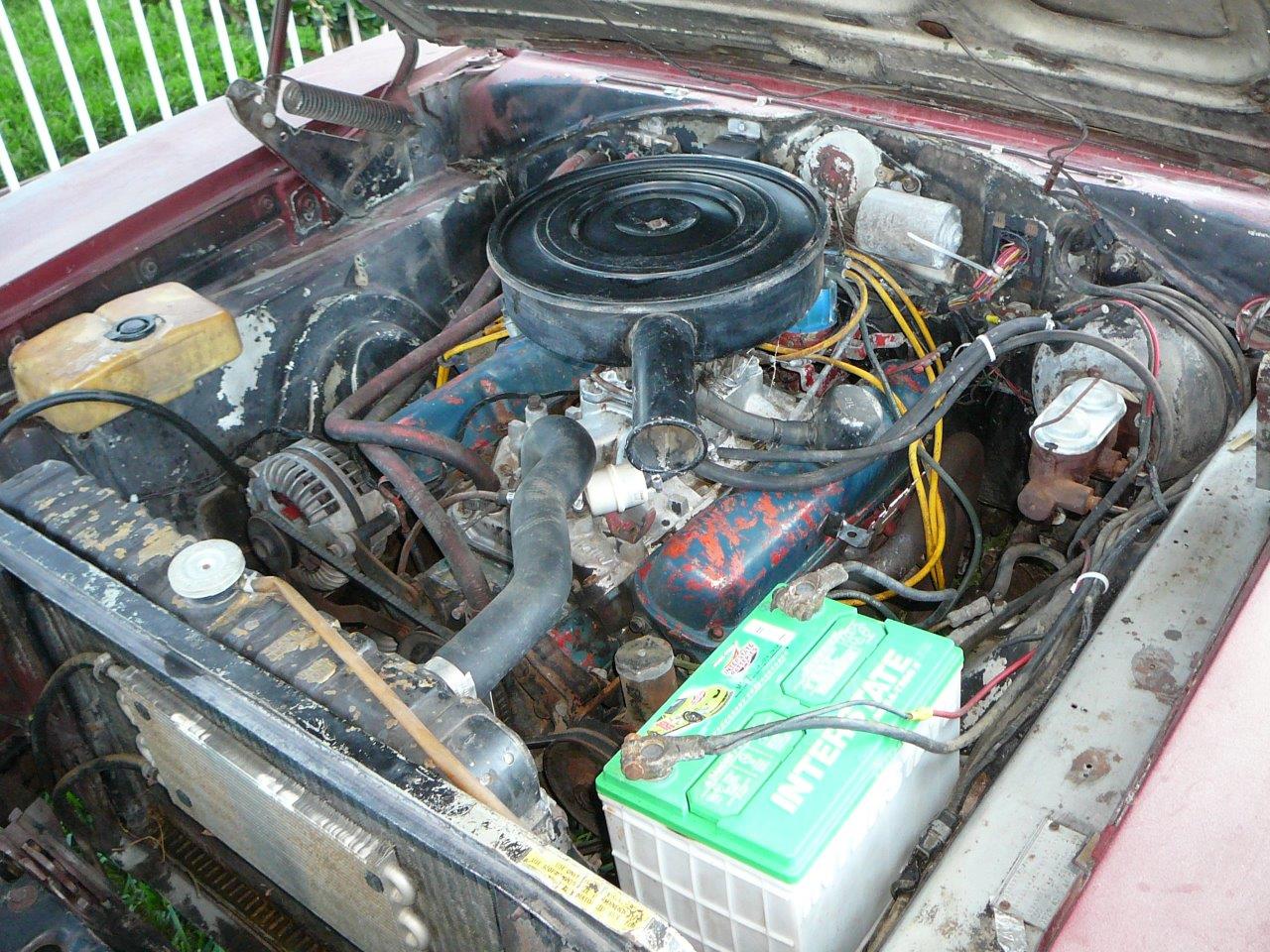 This is an original G code 318 V8 2 V Charger which has been upgraded to a 4V intake and carby-also has exhaust headers. 904 Auto tranny has been rebuilt prior to shipping. Charger has aftermarket power front disc brakes, newer aluminium radiator, and fuel tank.New BFG radials also fitted. The Charger starts runs and drives. Body on the charger is good - has original quarters, trunk floor, and floor pans.Lower rear quarter on right side and left side has some blog. Trunk floor is in fairly reasonable shape -it does not need replacing -only small rust spot.