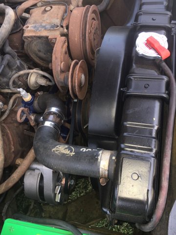 7)  new water pump, thermo fan, radiator hoses and fan belts
