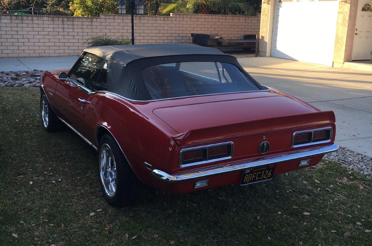 Camaro started life with an excellent rust free body with all original panels -then a quality respray in Matador paint was done with a black standard interior .Black convertible top is new -it is non power but goes up and down with ease.