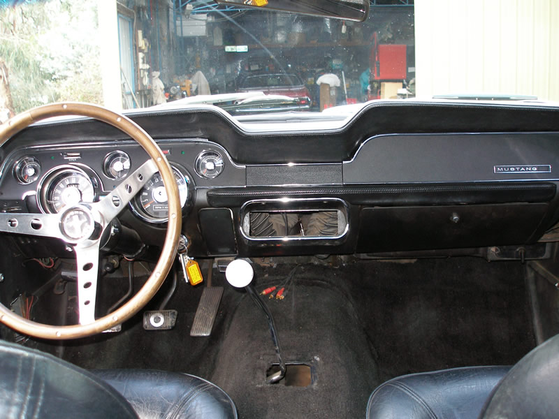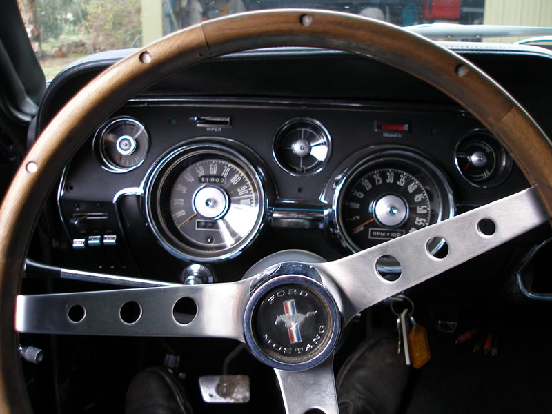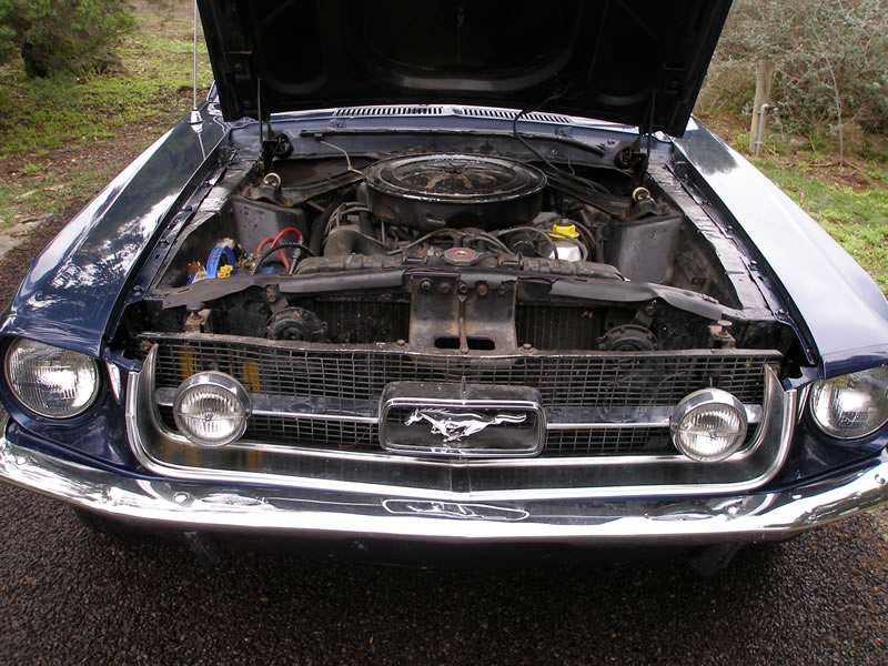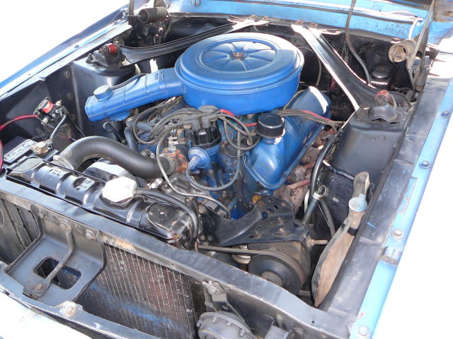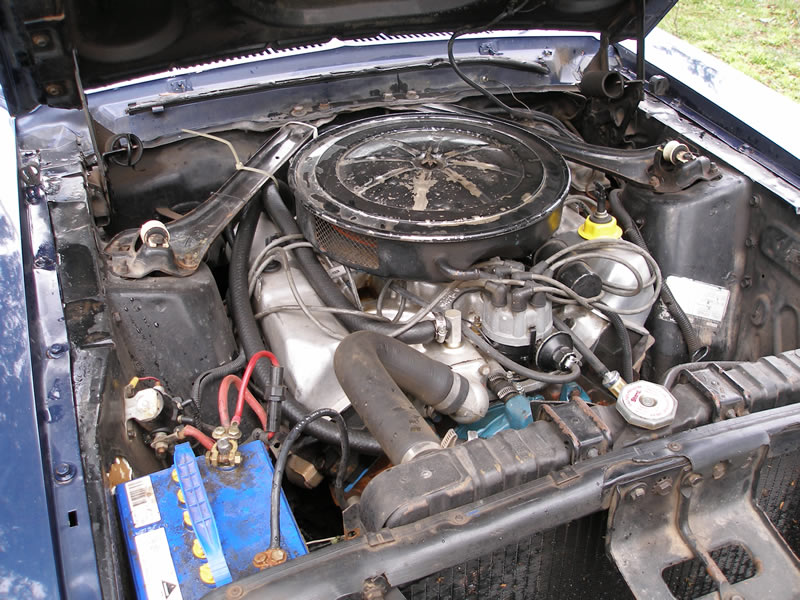 Good bodied Mustang which has power steering, power drum brakes and an aftermarket Vintage Air (air conditioning system). This cost $2000 US when installed, air blows cold. Original quarter panels, drivers side fender apron has been replaced, but no structural damage. Good strong motor and trans, front suspension needs work. Original black standard interior. Good value coupe.