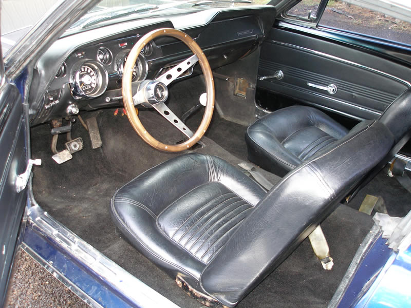 This is a genuine matching numbers S Code 390 GT (King Car in the US). It has the correct and original 4 speed toploader with Hurst comp shifter (original shifter comes with car). Will need a clutch replacement, has an exhaust leak, and the passenger side floor needs repair due to heater core leak. Good older 2 stage paint in correct Nightmist Blue colour, standard black interior. Fantastic 17" polished Mags with Goodyear Hipo tyres. If you want a car that has perfect body and rarity and becoming unavailable this is the Mustang to buy and keep.