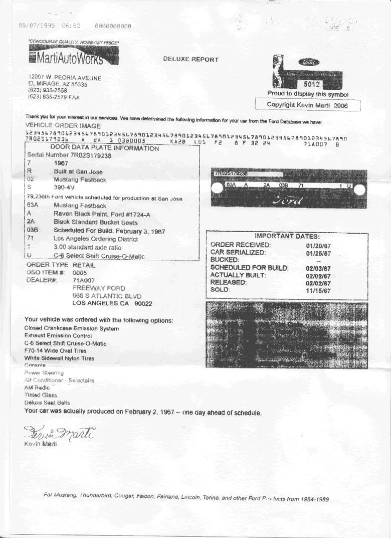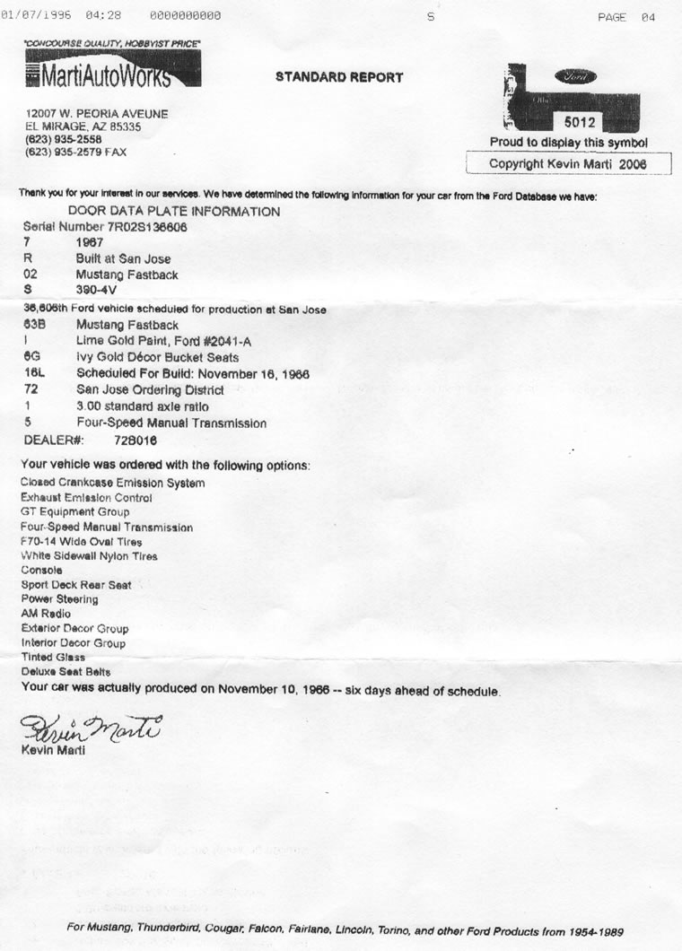 1967 Ford Mustang Fastback S code 390 V8 4V Auto