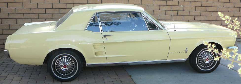 Very nice original C Code 1967 Mustang. Springtime Yellow is correct colour and car presents well. Older black interior is still in good shape but carpet is a little faded - all original quarter panels and floor pans. This is a very solid driver grade quality car that is ideal to use now. Nice appearance coupe. Correct wheels and hub caps with new correct size radial tyres. Still running black plates.