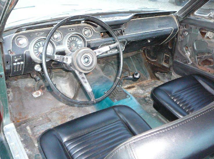 Fine example of a genuine GT 390 V8 4 speed, tacho dash Mustang to suit resto. Original Dark Moss Green exterior paint is wearing thin. Interior has had new black upholstery and foam just fitted before shipping. Mustang has new 15 by 7 Styled steel wheels with new BFG series 60 tyres. Mustang has the original 9 inch rear end and has correct GT 390 engine and trans (1968 GT 390 motor). Good bodied Mustang with original fenders, quarter panels and floors, fenders have been trimmed at inner lips for tyre clearance. See Marti Report for full option list on this car. This is a correct GT 390 4 speed with the original body. Best Fastback to buy under a Shelby.