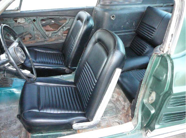 New seat upholstery and foam kit, new door trims and quarter trims, and new carpet.