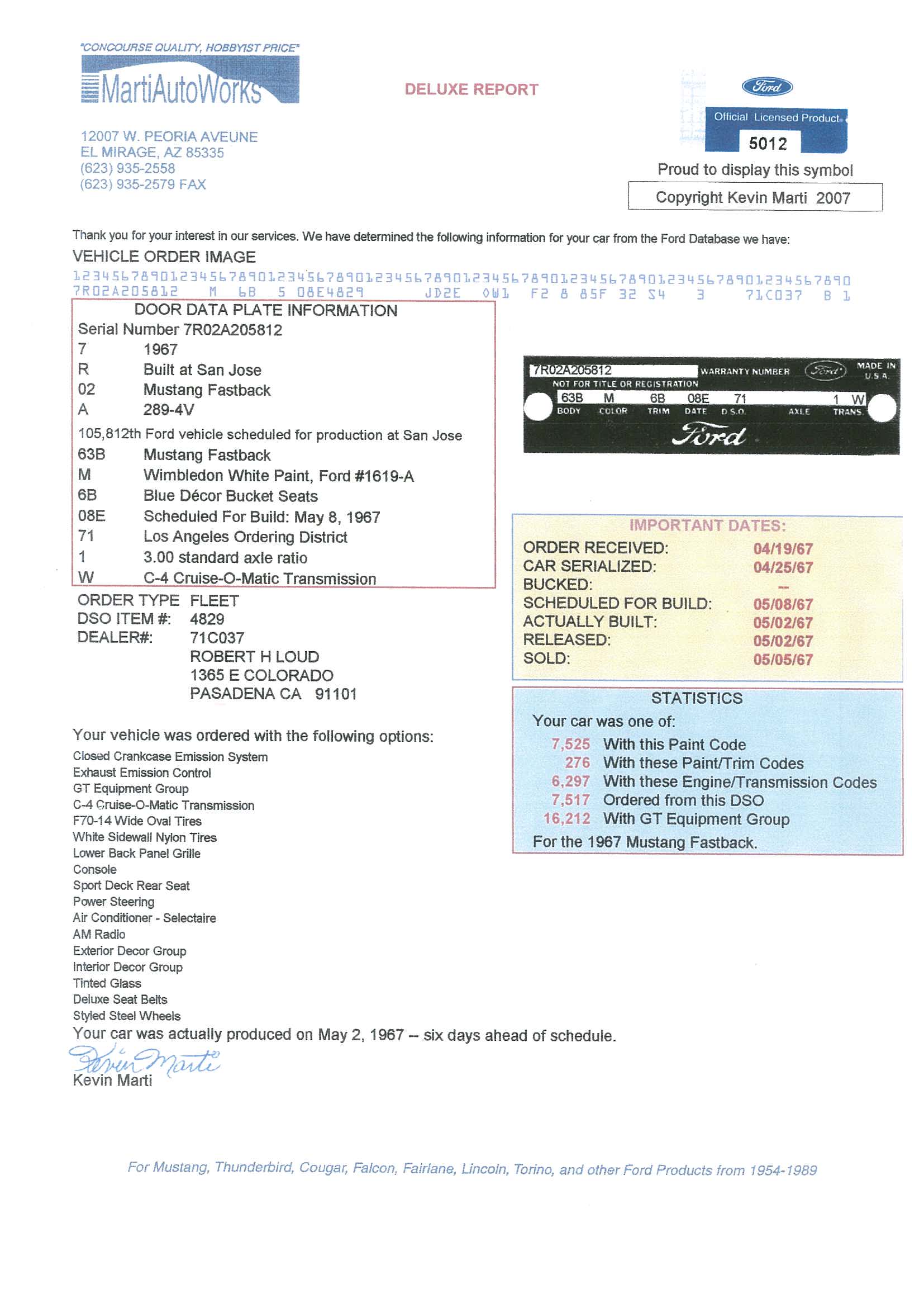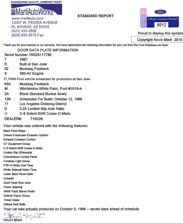 1967 Ford Mustang Fastback S code GTA 390 V8