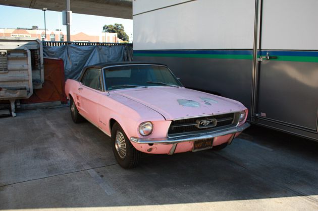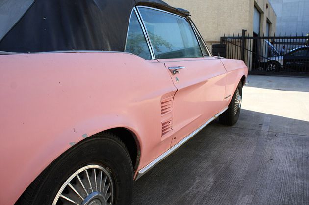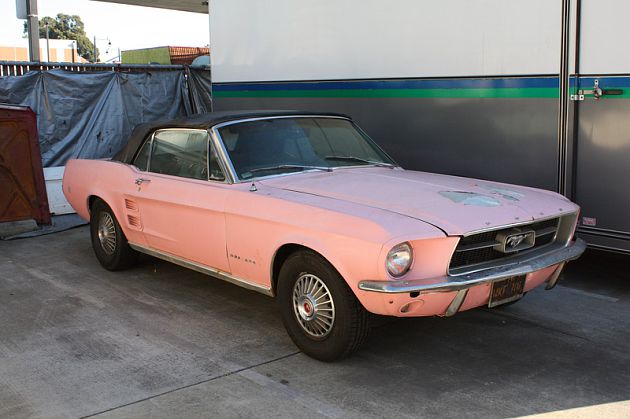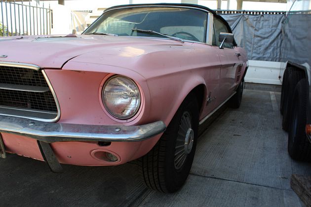 Originally a white Mustang with a black interior, was painted Pink many years ago. Mustang needs a resto but is a fairly clean car rust wise, no issues with torque boxes etc. . Straight body and runs and drives. Good cheap convertible.