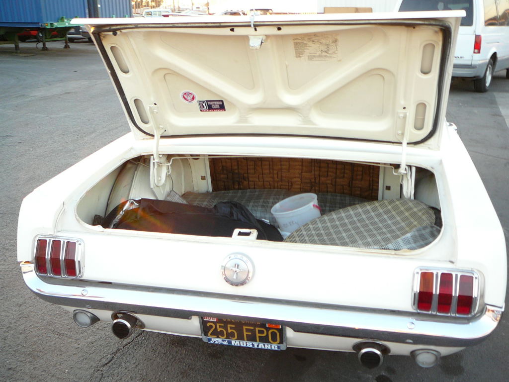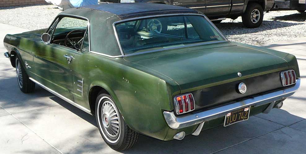 1966 Ford Mustang Coupe 289 V8 Auto VIN 6RO7C118409 Original C Code 289 V8 that has power steering, factory Kelsey Hayes disc brakes and aftermarket air-conditioning (needs compressor in engine bay). Good driving car that has good radial tyres - car would drive anywhere. Paint is OK for a daily driver. Full set of seat covers for front and rear seats included in price - full set of foam covers with seats - note only drivers seat needs to be redone at present. Very solid clean body - has had driver quarter panel replaced in the past. Due early Feb. SOLD Car ID#303 - Return to Index |