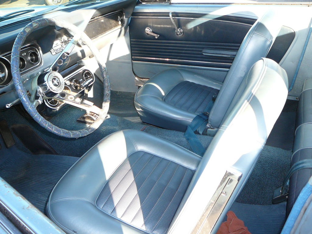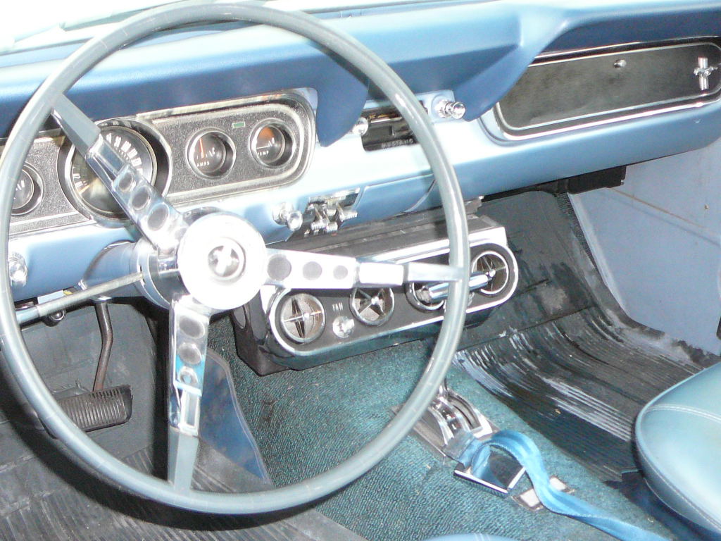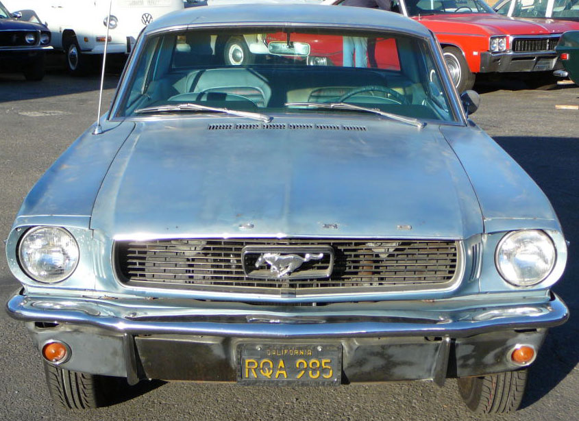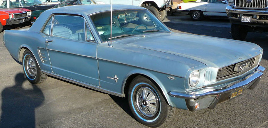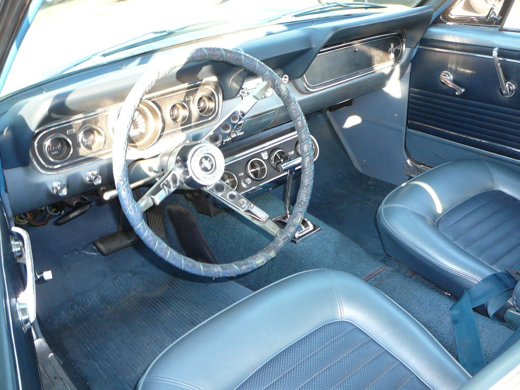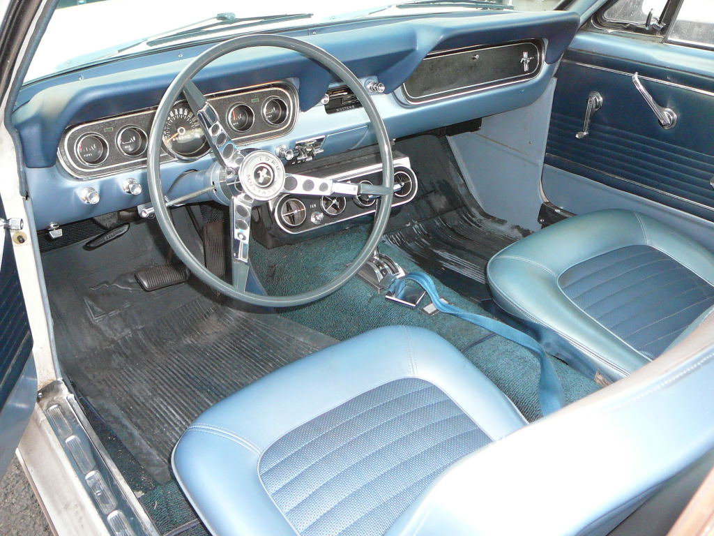 1966 Ford Mustang Coupe 289 V8 Auto VIN 6RO7A168462 Original A code 289 V8 4V Mustang that has power steering and factory air - conditioning. Nice original driver, it is likely that speedo in this car has only turned over once. Silver blue exterior is faded but is over an excellent straight body with all original panels. Only had one repaint in same colour. Genuine black plate Californian Mustang with correct two tone interior still in top shape. No rust. Great car to buy now and drive and enjoy and paint over winter months. New correct radial tyres with white walls and no door or dash cuts. SOLD Car ID#306 - Return to Index |