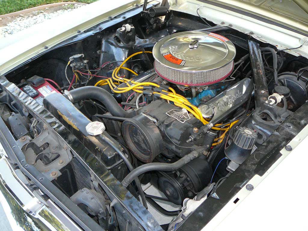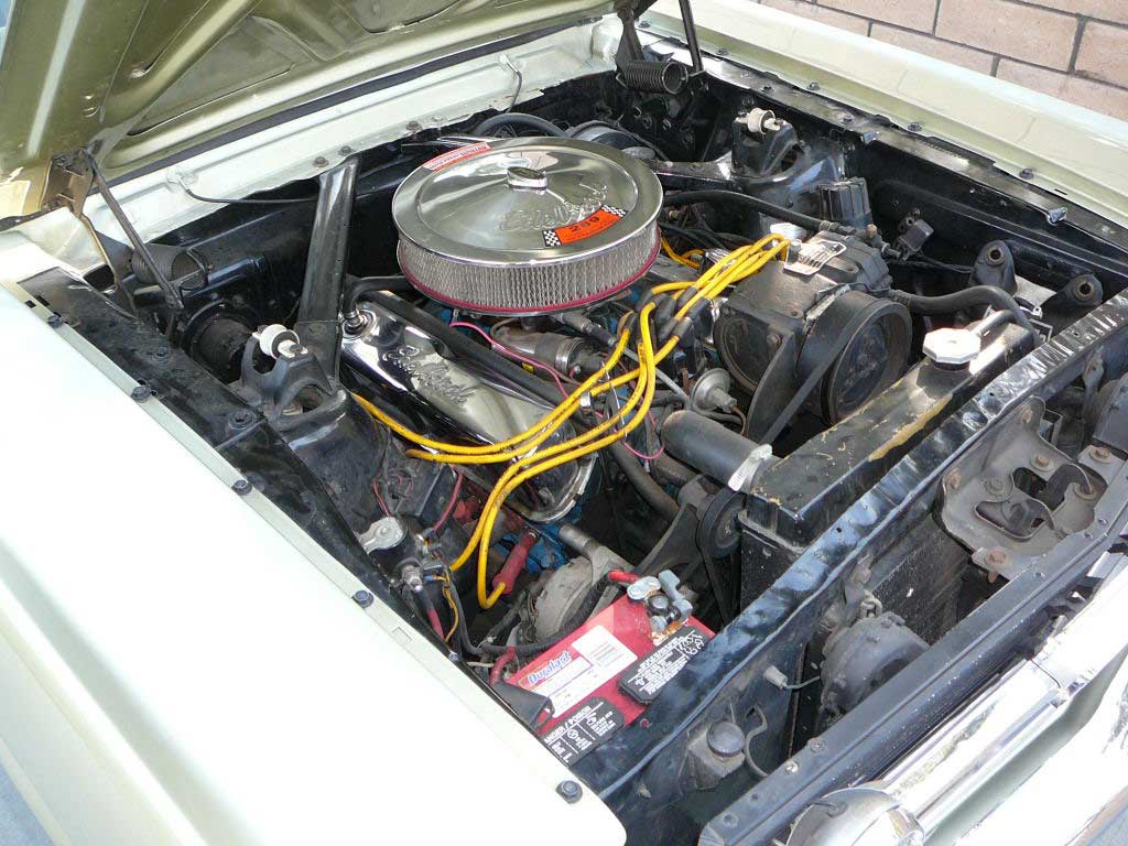 Note, wrong booster and master cylinder showing, there is a new correct GT master cylinder included with car. All original panels with only the battery box front apron replaced - not due to accident damage. Very solid and rust free body with original floors and quarters. Nice driver. White vinyl top is in good shape and two tone interior is also reasonable (front seat redo would add to car presentation). Top GT with an excellent body. SOLD Car ID#312 - Return to Index |