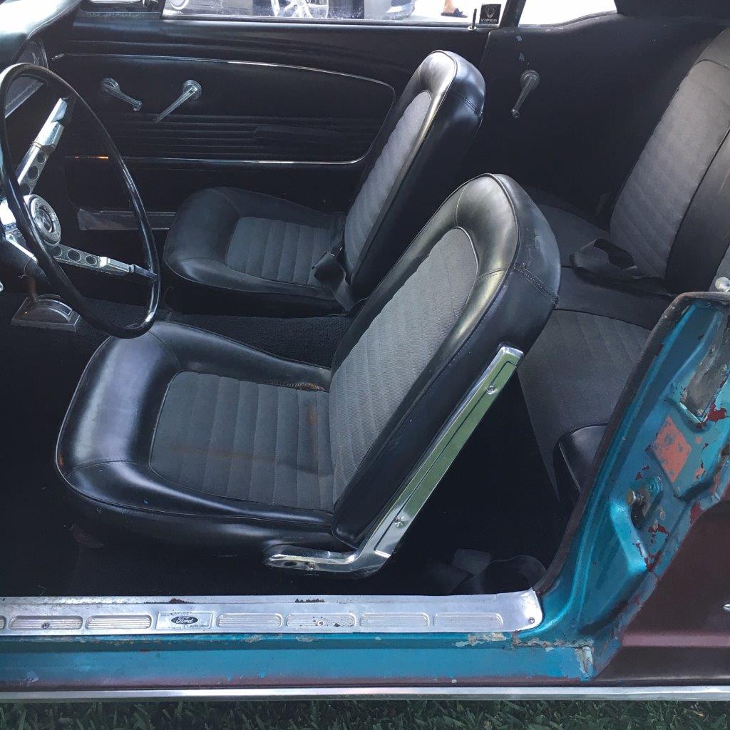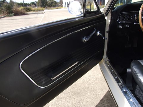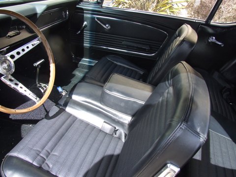 Options include power drum brakes and front seat is buckets /bench fairly rare option.Paint is super nice and interior is all new black standard .This coupe is a T Code from factory so it started life as a 6 cylinder but is now running a V8. Body quality is excellent .Top Mustang for the money