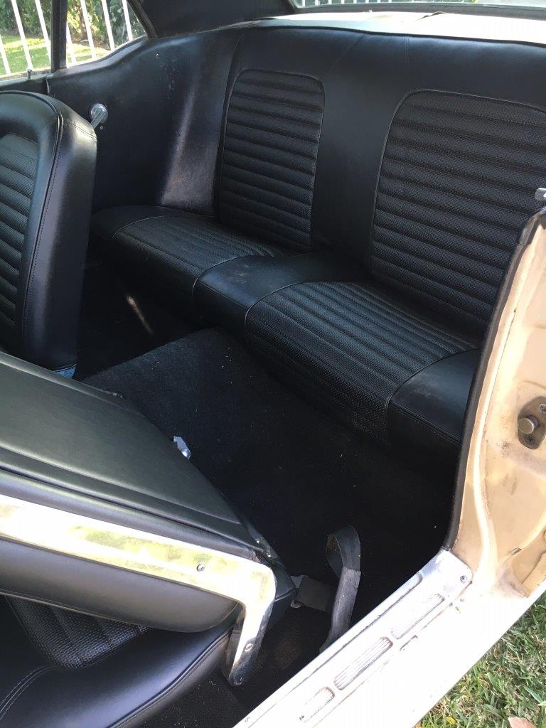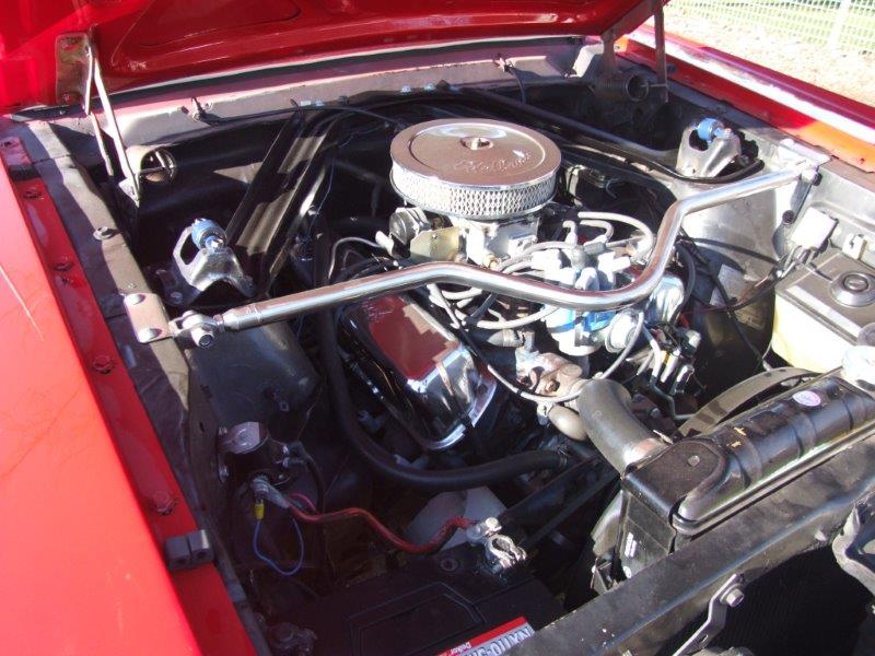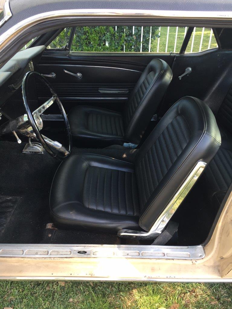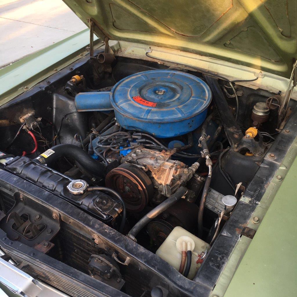 Original 289 V8 coupe upgraded to factory 4V manifold and 4 barrel Autolite carby .Engine starts and runs well but auto choke needs work. Original colour was Candy Apple Red-good colour to go back to when car is resprayed.Solid car with no rust issues -drivers door has had a small repair, Standard black interior was replaced prior to shipping -all new seat upholstery and foam kit .Vinyl top was also replaced . Brakes need work for roadworthy but the following parts are coming in with car -New disc brake master cylinder,new front brake hoses ,new brake pads