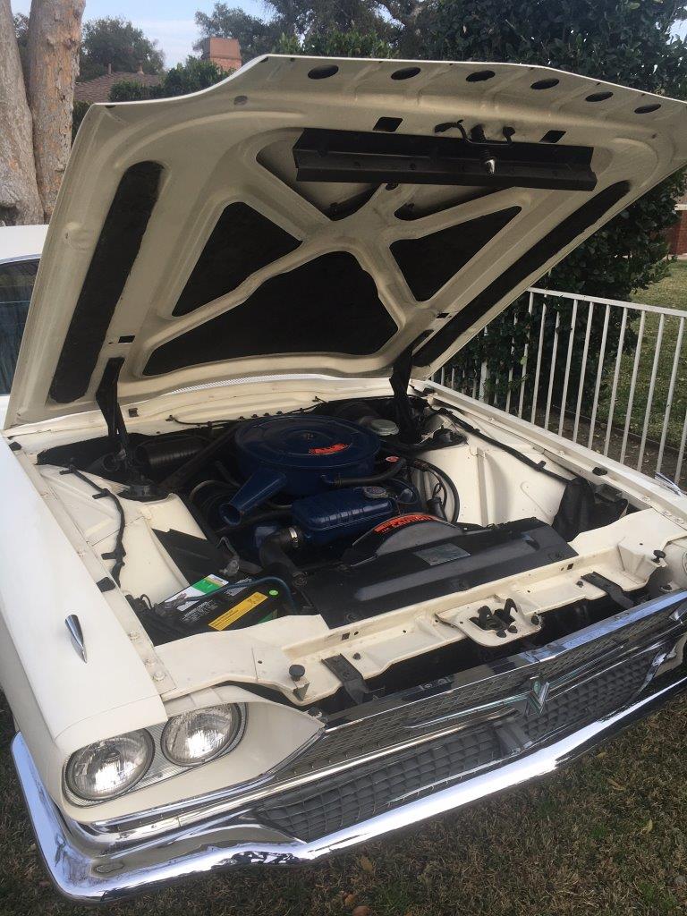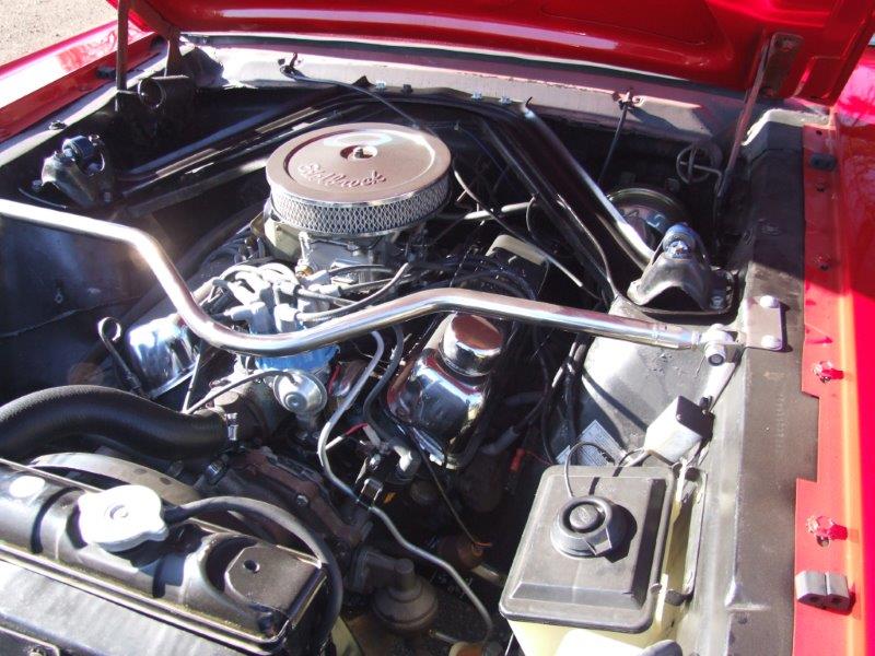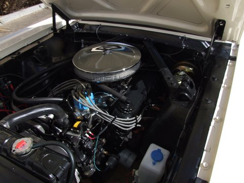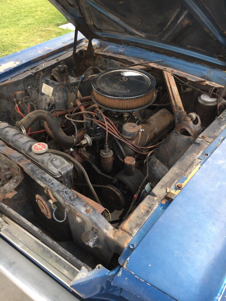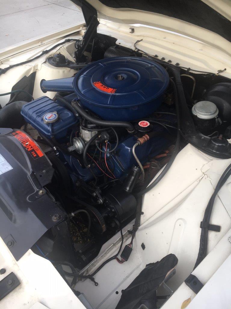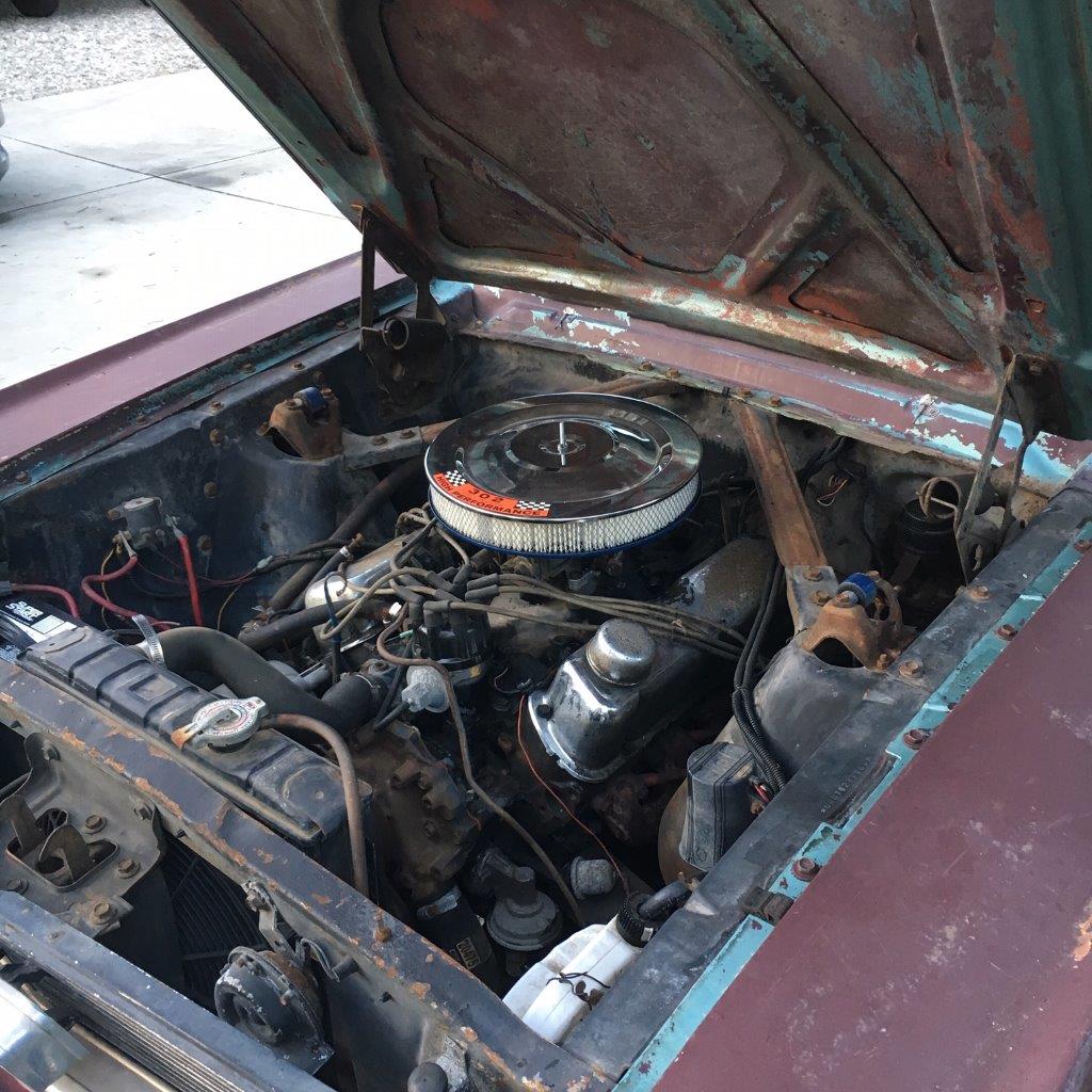 Original 289 V8 coupe upgraded to factory 4V manifold and 4 barrel Autolite carby .Engine starts and runs well but auto choke needs work. Original colour was Candy Apple Red-good colour to go back to when car is resprayed.Solid car with no rust issues -drivers door has had a small repair, Standard black interior was replaced prior to shipping -all new seat upholstery and foam kit .Vinyl top was also replaced . Brakes need work for roadworthy but the following parts are coming in with car -New disc brake master cylinder,new front brake hoses ,new brake pads