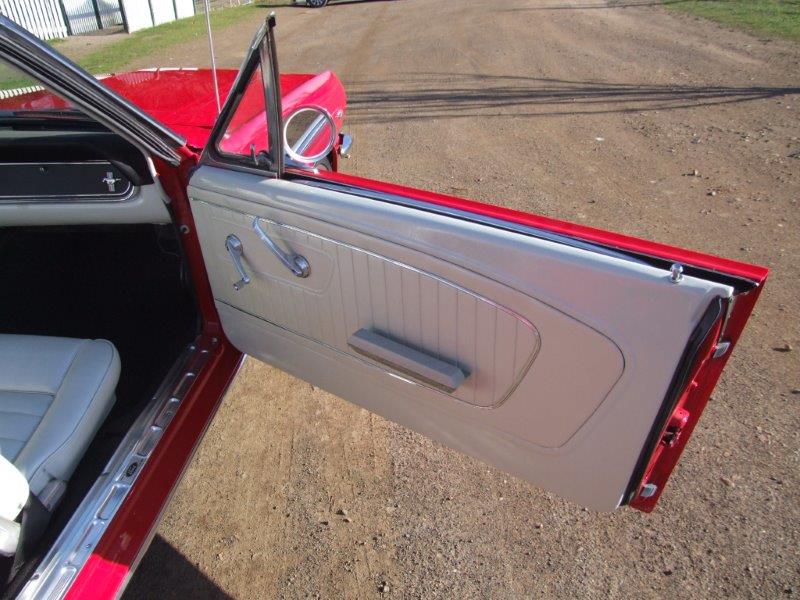 Here we have a beautiful 66 Mustang Coupe that has had tons of money spent on restoration work . This Coupe started life as a T code ( 6cyl) but has had quality performance upgrades done -there is no 6 cylinder running gear on this Mustang. Note any Mustang showing a T in the middle of the VIN is or was a 6 Cyl.