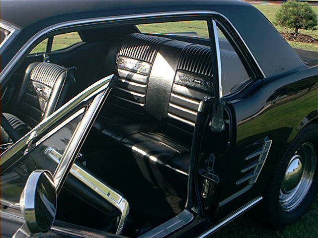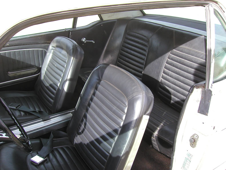 Rear end is a Traction Lock 9 inch . Has override traction bars same as 65 GT350. Magnum 500 wheels are genuine and tyres are good. Has 3 inch wide seat belts and later style 3 point set up.