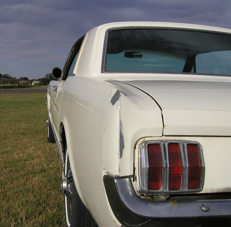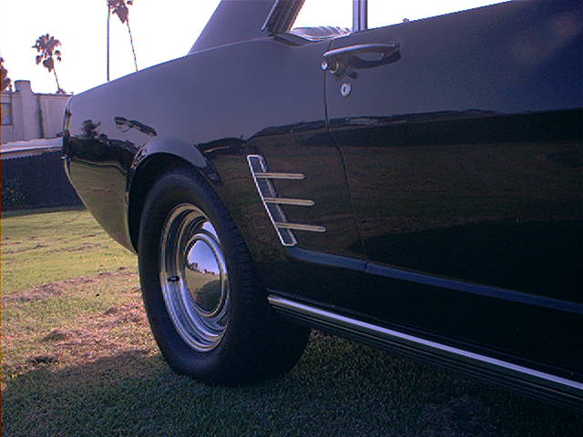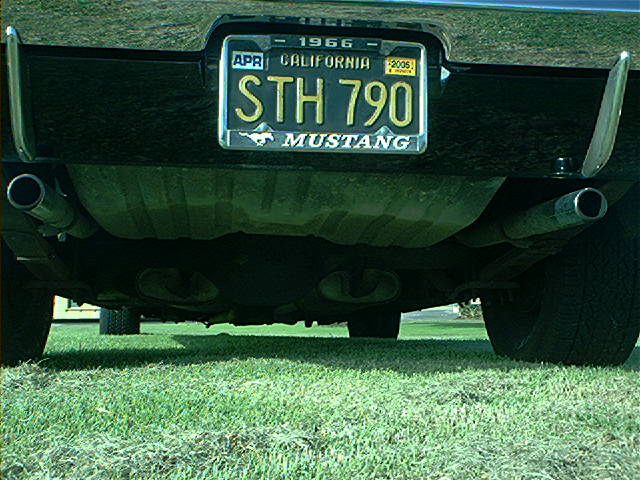 Bonnet is the real deal. Fibreglass with steel reinforced inserts. Exhaust has glass pack mufflers and exits at the side as 65 did.
