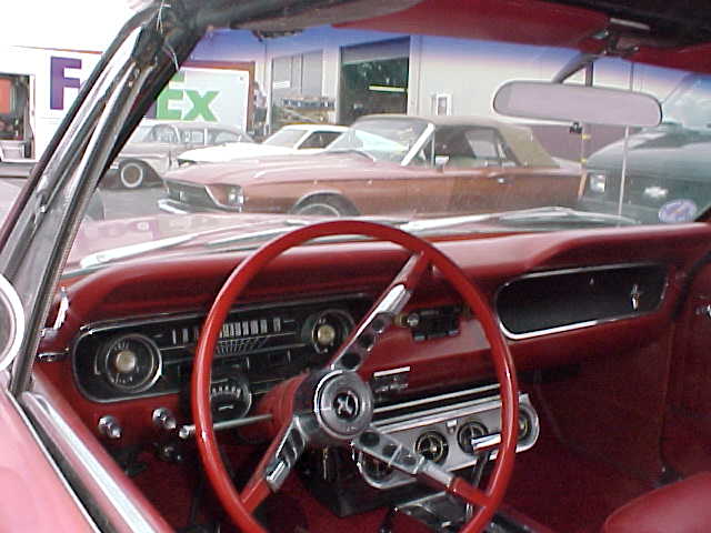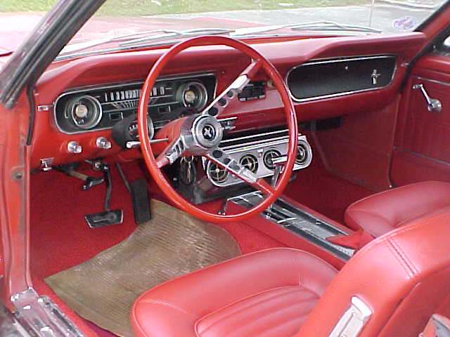 Colour is Brandywine with white Deluxe Interior (PONY). The 289 V8 is fresh and healthy, has dual exhausts with Flowmaster mufflers. GT rear valance, Headers, Edelbrock Intake Manifold,and Holley Carb.