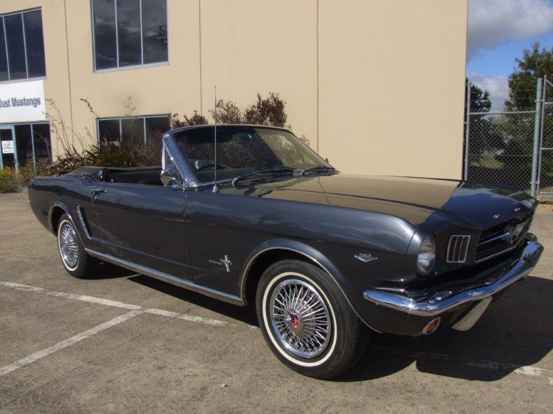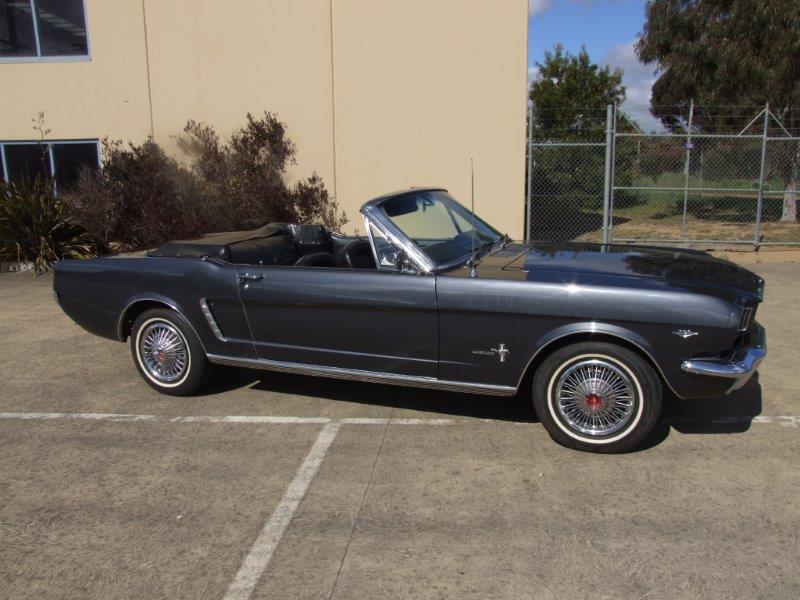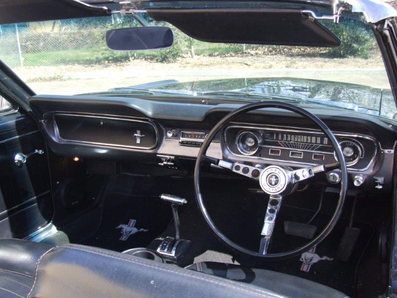 This Mustang is an early 1964 build ( June 64) and as such still has the early features intact ( bonnet with the sharp edge not rolled as 65 bonnets, grill in front of the battery , large horns on the bottom rail, only item missing is the generator that has been replaced with an alternator. Dash also has early generator light.Mustang has been converted to right-hand drive -I rate conversion as a very good example .. Dash is done well as has the firewall .Wipers also converted to RHD. Mustang drives well and has good performance.