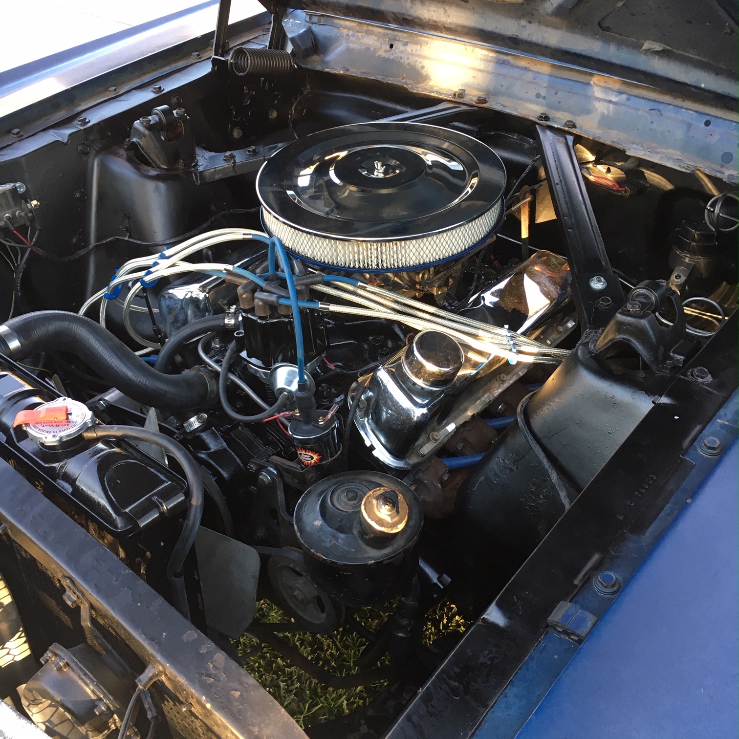 Mustang is a good buy at the price shown.Floors are clean -car is not a rusty relic but a good car to get into at a reasonable price -engine has electronic ignition ,Edelbrock  performer 4V manifold and 4 V carby. Engine is in good shape .