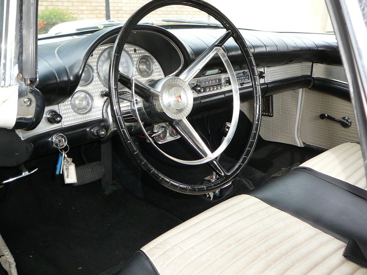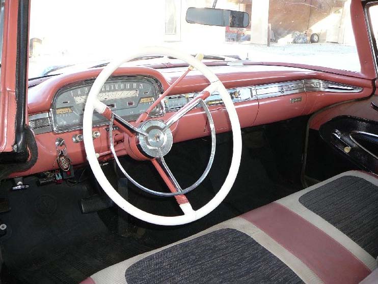 Original 292 V8 Y Block with 3 speed cruise-o-matic auto tranny. Options include power steering and fender skirts. Super original Fairlane with older paint job -original colour was white. Salmon two tone interior is all original and has never been changed. There is some wear on the drivers seat but correct upholstery is available for this car. Body is super with no rust or accident damage. Very nice 50's driver with thousands of dollars of receipts kept by owner. Before shipping new white wall radials were fitted so this Fairlane drives smooth and straight on the road -front end alignment just done. Car starts with one click and trans shifts well -plenty of power from the engine. This is a great cruiser that can be enjoyed now. New trunk weatherstrip provided.