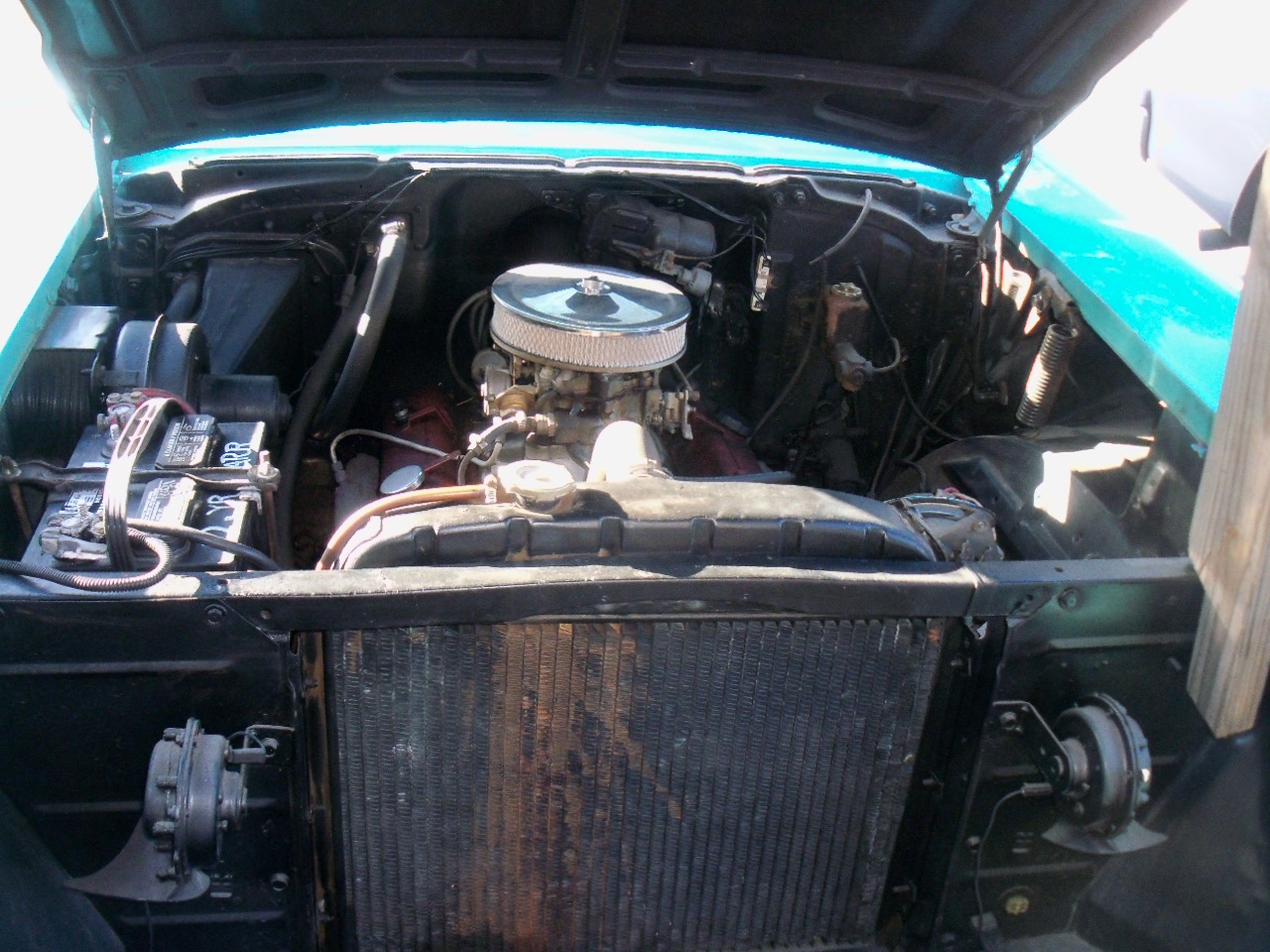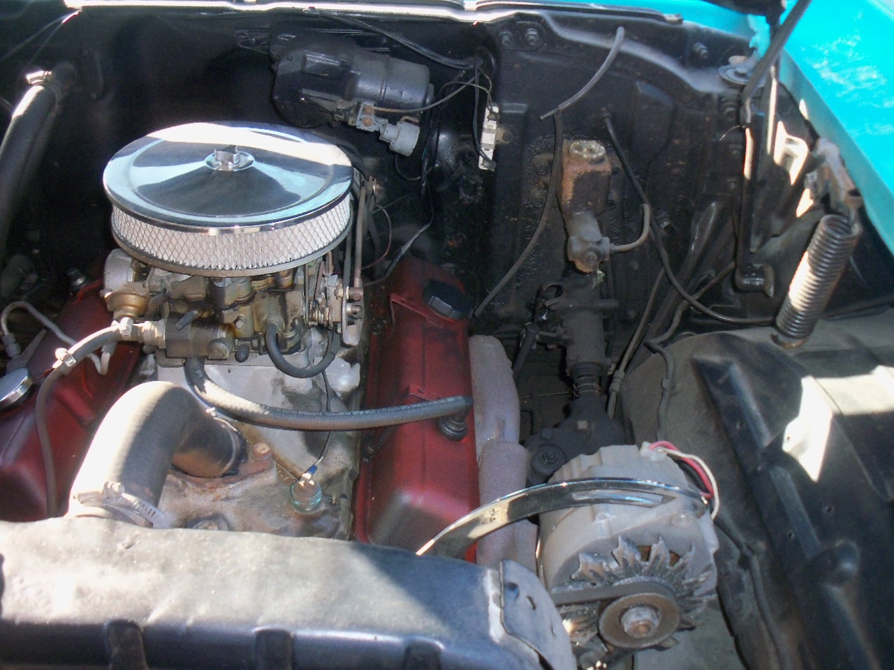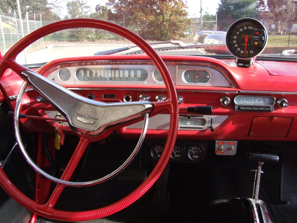 Chevy runs fine - engine has an aluminium intake but otherwise stock. Steering wheels and guages are in good shape.
