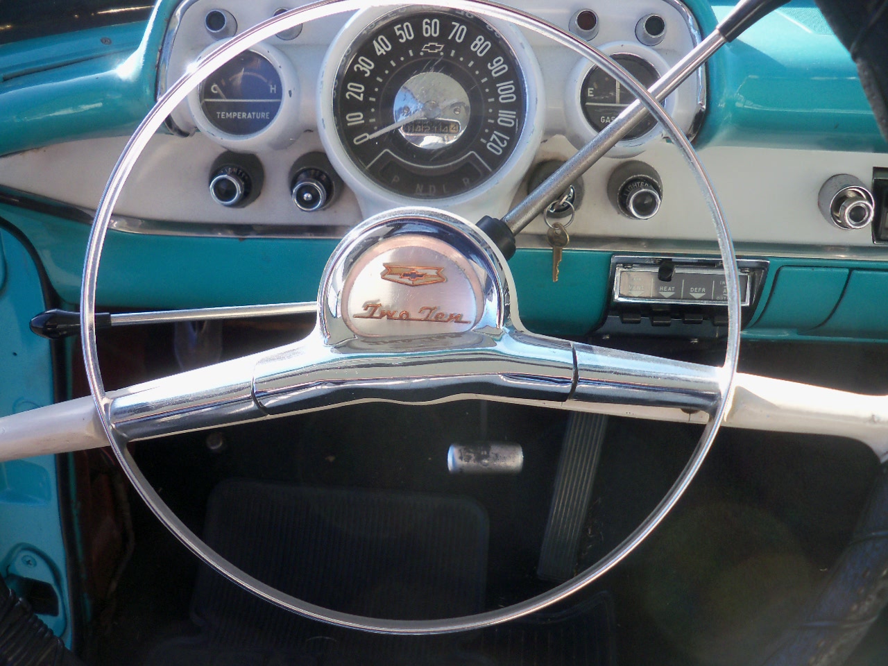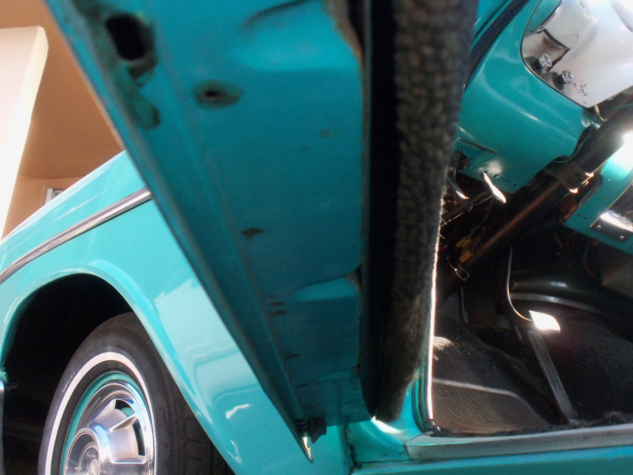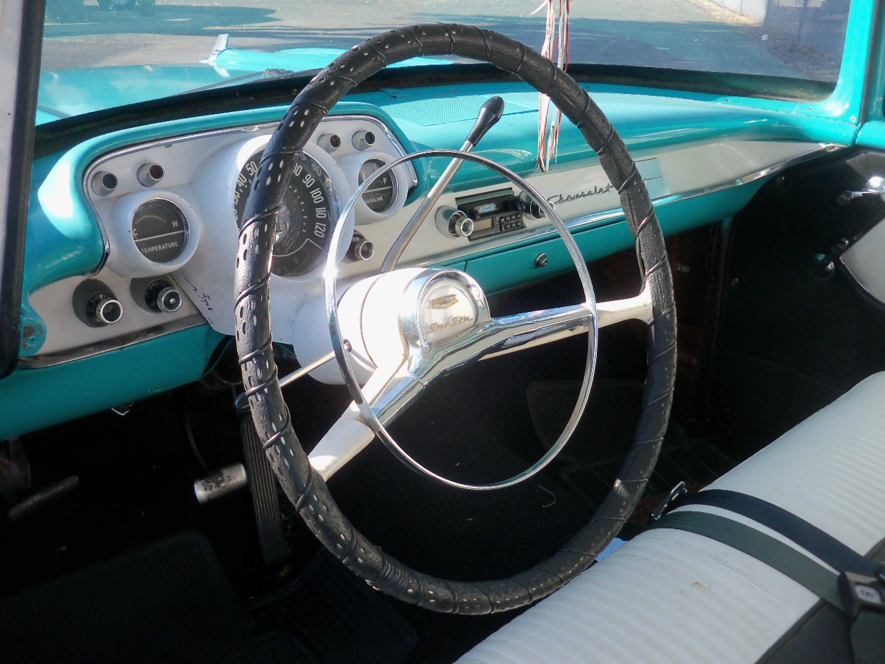 Chevy runs fine - engine has an aluminium intake but otherwise stock. Steering wheels and guages are in good shape.
