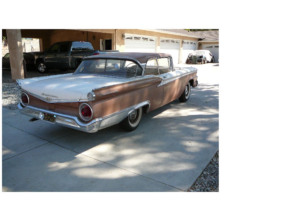 Extremely solid and original Ford Fairlane with original paint (two tone bronze / White) now faded. Virtually rust free and no accident damage on this Californian black plate Ford. Interior has had some replacement work done but correct interiors are available from le baron bonney in the states (see my other 59 Ford for correct interior). All original dash, steering wheel and radio. Car drives well. Excellent example of a Club Victoria with rear wrap around window.