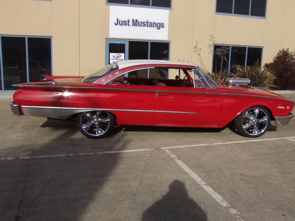This is a rare 1960 Ford Starliner in very good condition .The paint is four years old with very minor blemishes -it has a gorgeous deep red colour which is original to the car .The wheels are brand new and are Boss 338 ,20 inch staggered rims ,8.5 inch front ,10 inch rear.Exterior trim is 100% complete and in excellent condition-all stainless and badges are in nice condition .Glass is all perfect and windows go down perfectly . The interior is also 100% complete and in absolutely mint condition.Interior is showing little use so mileage on car is low . Door trims are original and in fine condition. Original headliner is perfect with original hanger hooks . Specifications on Starliner