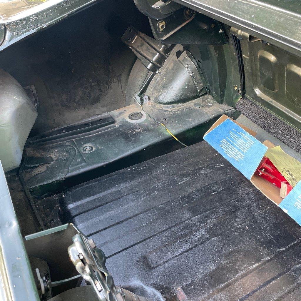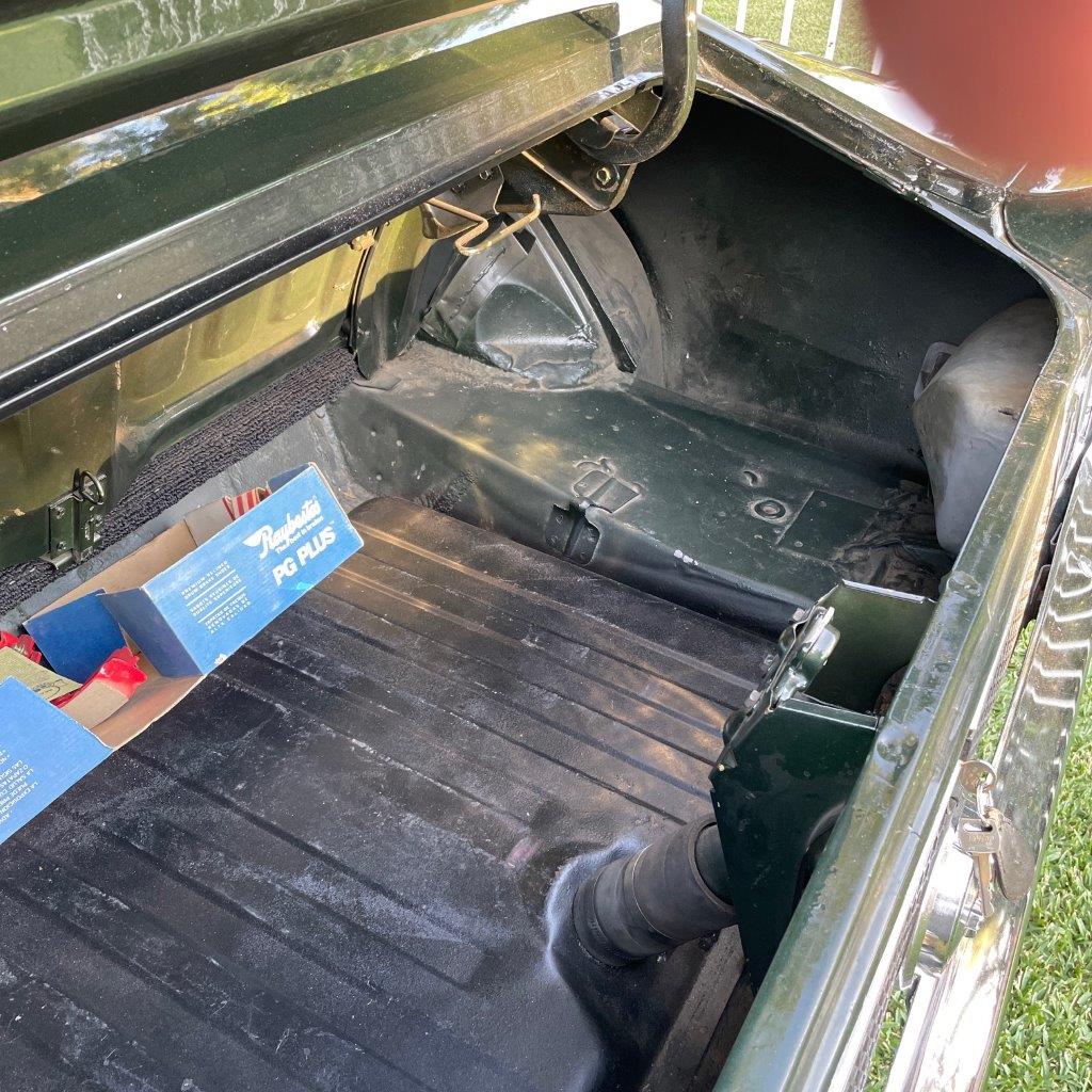 Could use new seat covers, has an excellent original body with faded paint. Correct colour was lime gold metallic. Black plate Californian car all its life. Only minor rust from heater core leak, does not need new floor pan only a patch.