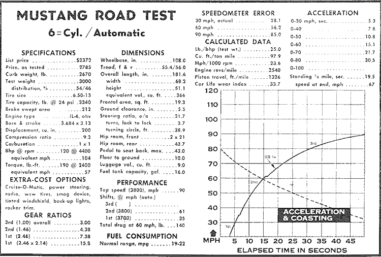 Tests courtesy of "Mustang A Complete Guide a Car Life special Edition", printed 1965